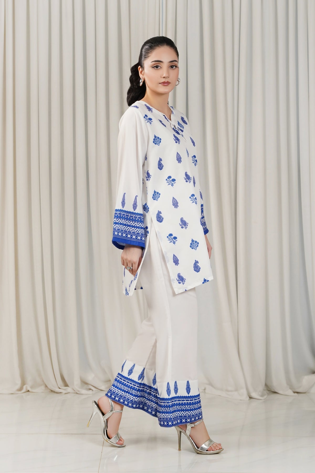 This 2 piece printed-colored co-ord set features luxurious and comfortable fabric and impeccable cuts given to every detail of the article, offering versatility and sophistication for any occasion.