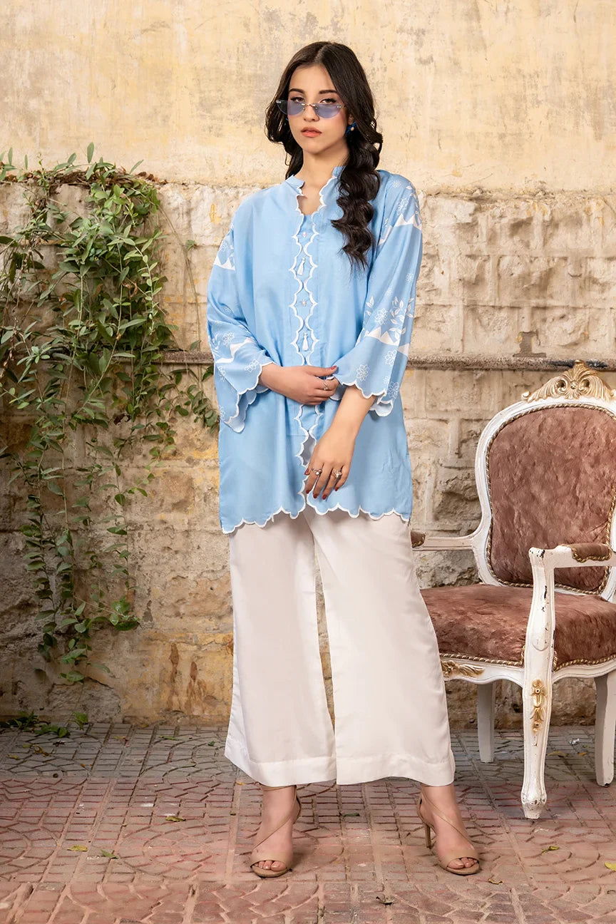 A beautifully printed two-piece featuring intricate floral patterns and a relaxed silhouette. The straight-cut shirt and white trousers offer effortless elegance, perfect for both casual outings and semi-formal occasions.
