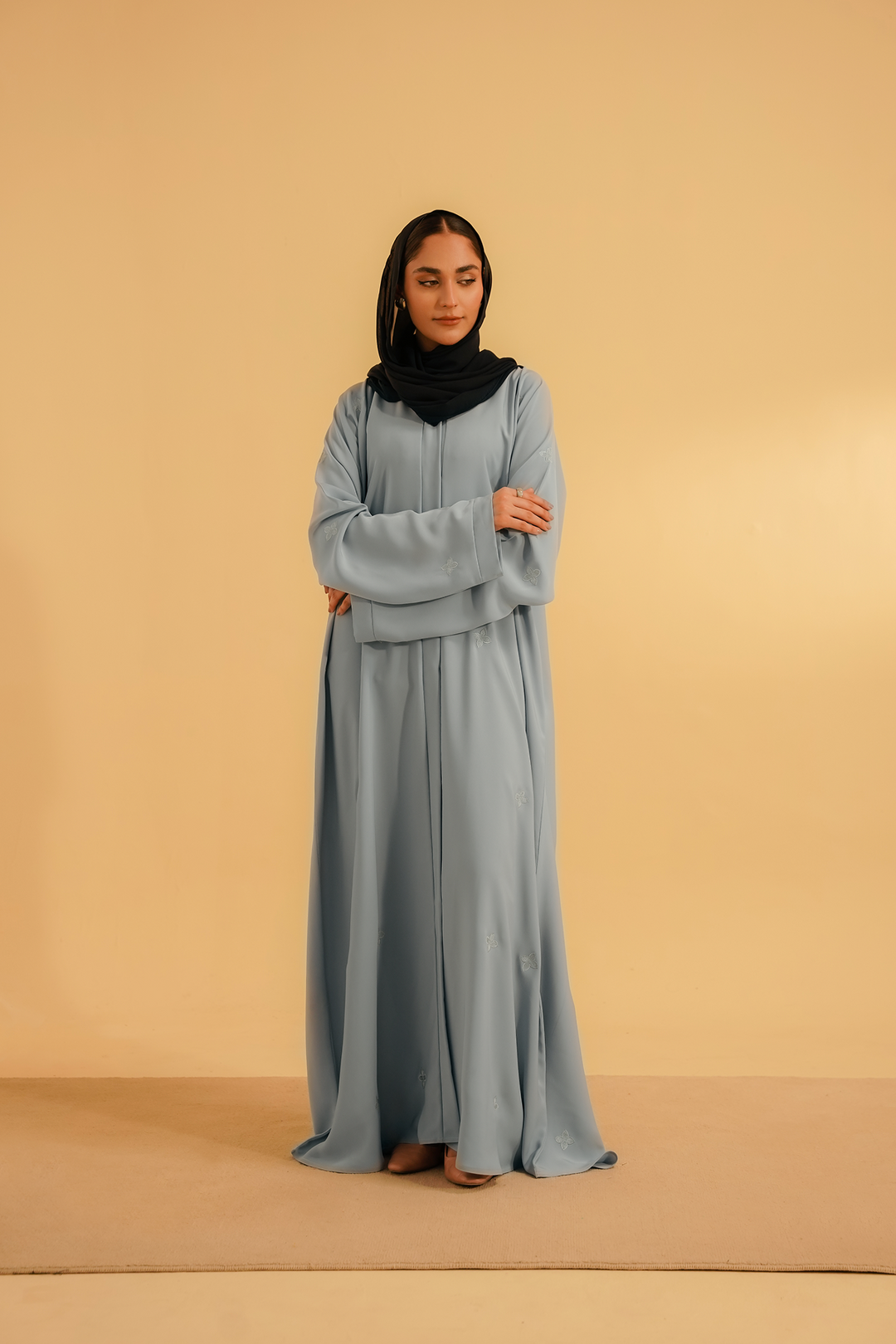 Divinely Crafted Abaya Casual Crepe 1 Piece Embroidered Abaya | Sky Blue
