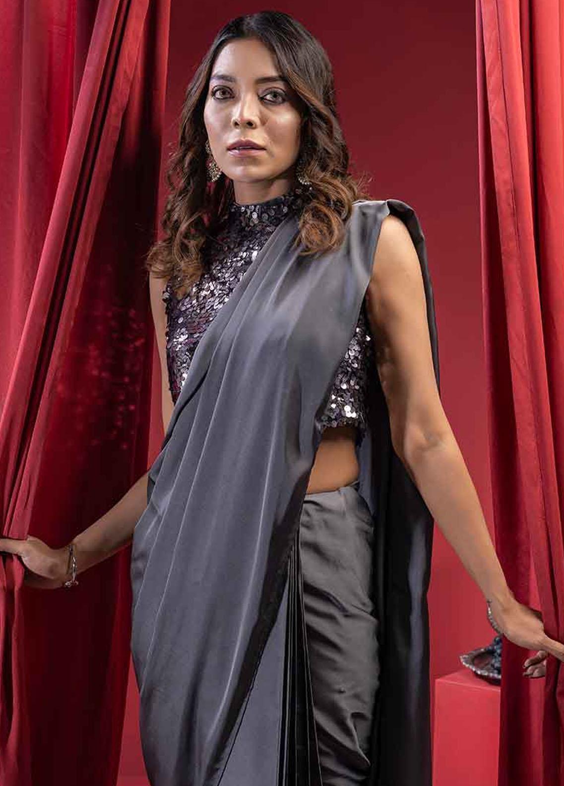 Jooray Kapray Pret Formal Net Saree JK23F Pant Sari Grey
