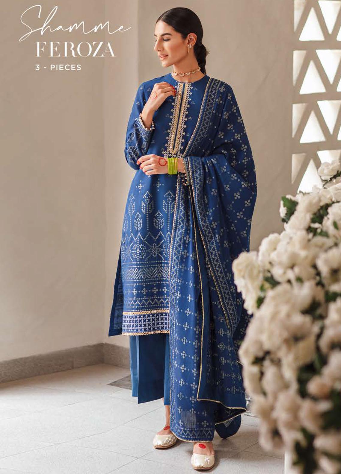 Mehrbano By Cross Stitch Embroidered Lawn Suits Unstitched 3 Piece CS22-ME2 D1 Shamme Feroza - Eid Collection