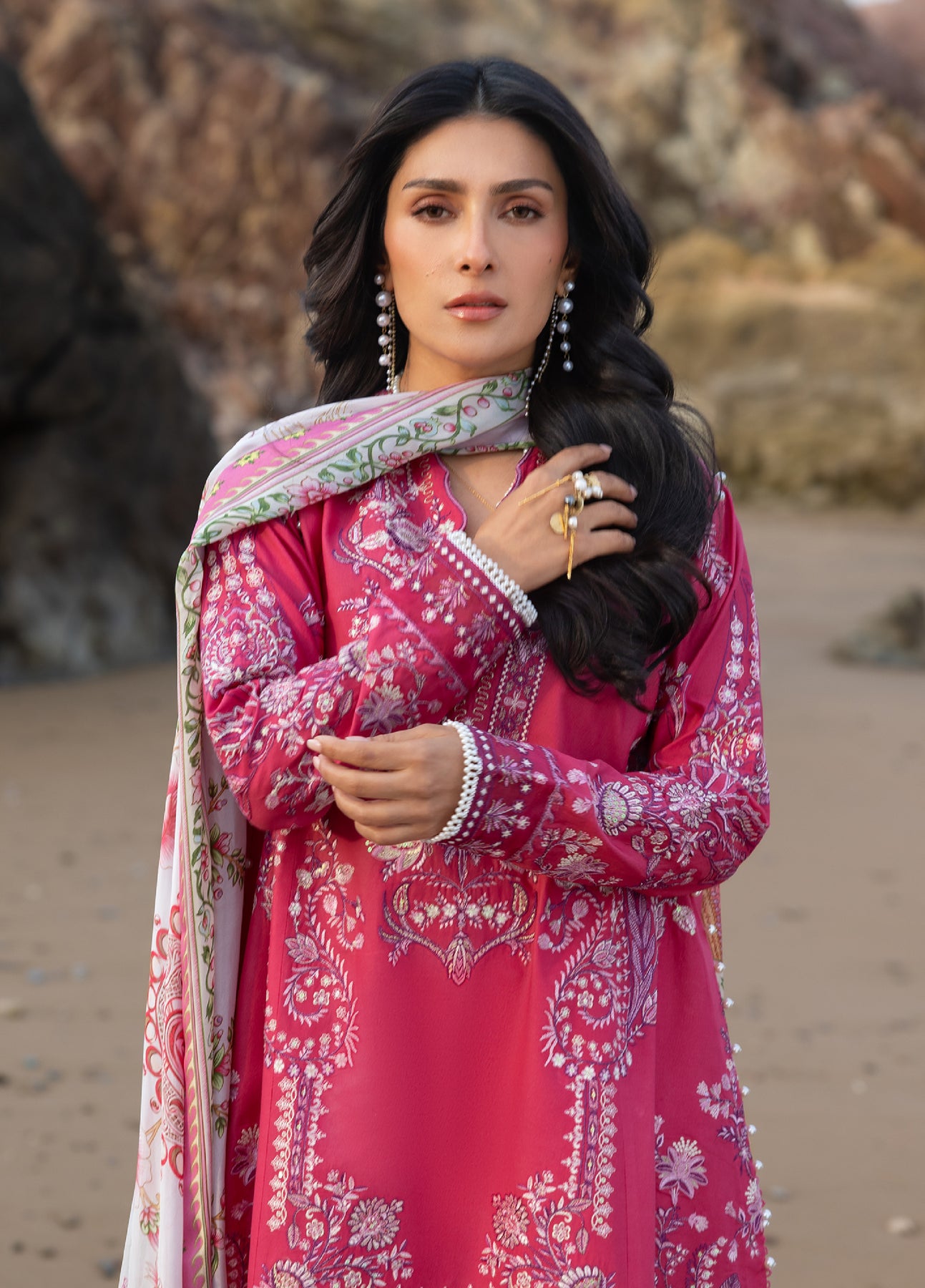 Siraa by Sadaf Fawad Khan Unstitched Embroidered Luxury Lawn 3 Piece Suit SDF26USL Gulrukh - Festive Collection