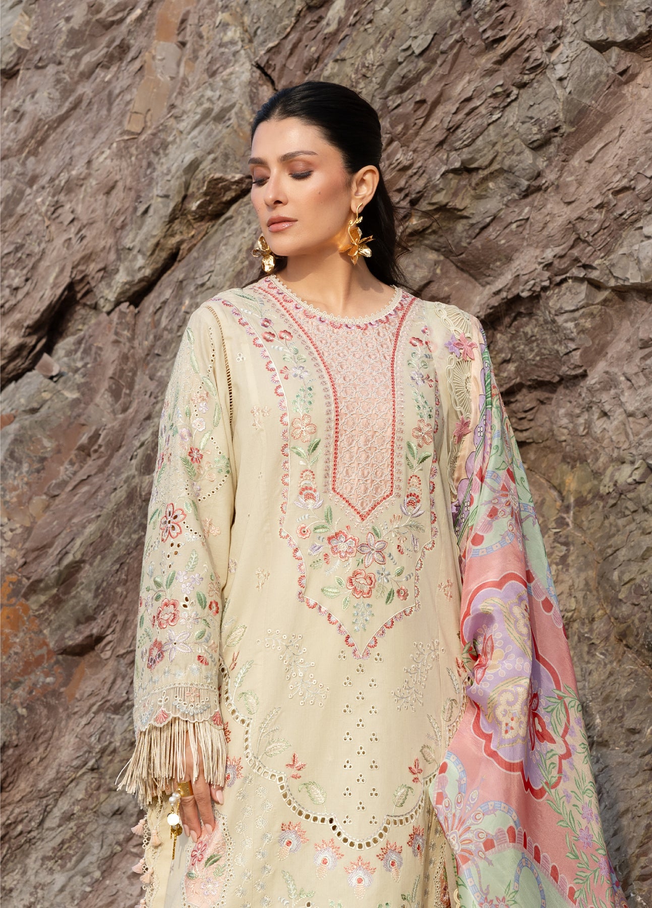 Siraa by Sadaf Fawad Khan Unstitched Embroidered Luxury Lawn 3 Piece Suit SDF26USL Sunehri - Festive Collection