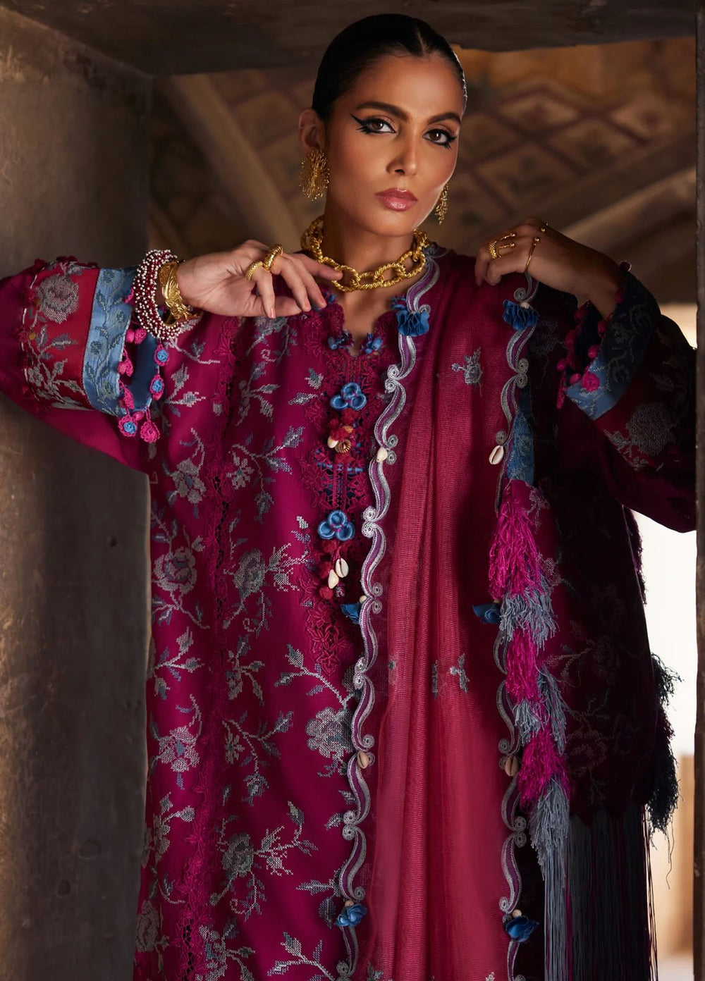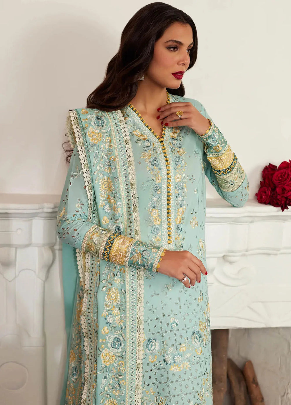 Ladies the wait is over, Elan winter collection offers 7 adorable designs with modern cuts and style, this 3 piece unstitch suit has rich and impactful color palettes which definitely makes you the center of attention where ever you go.
