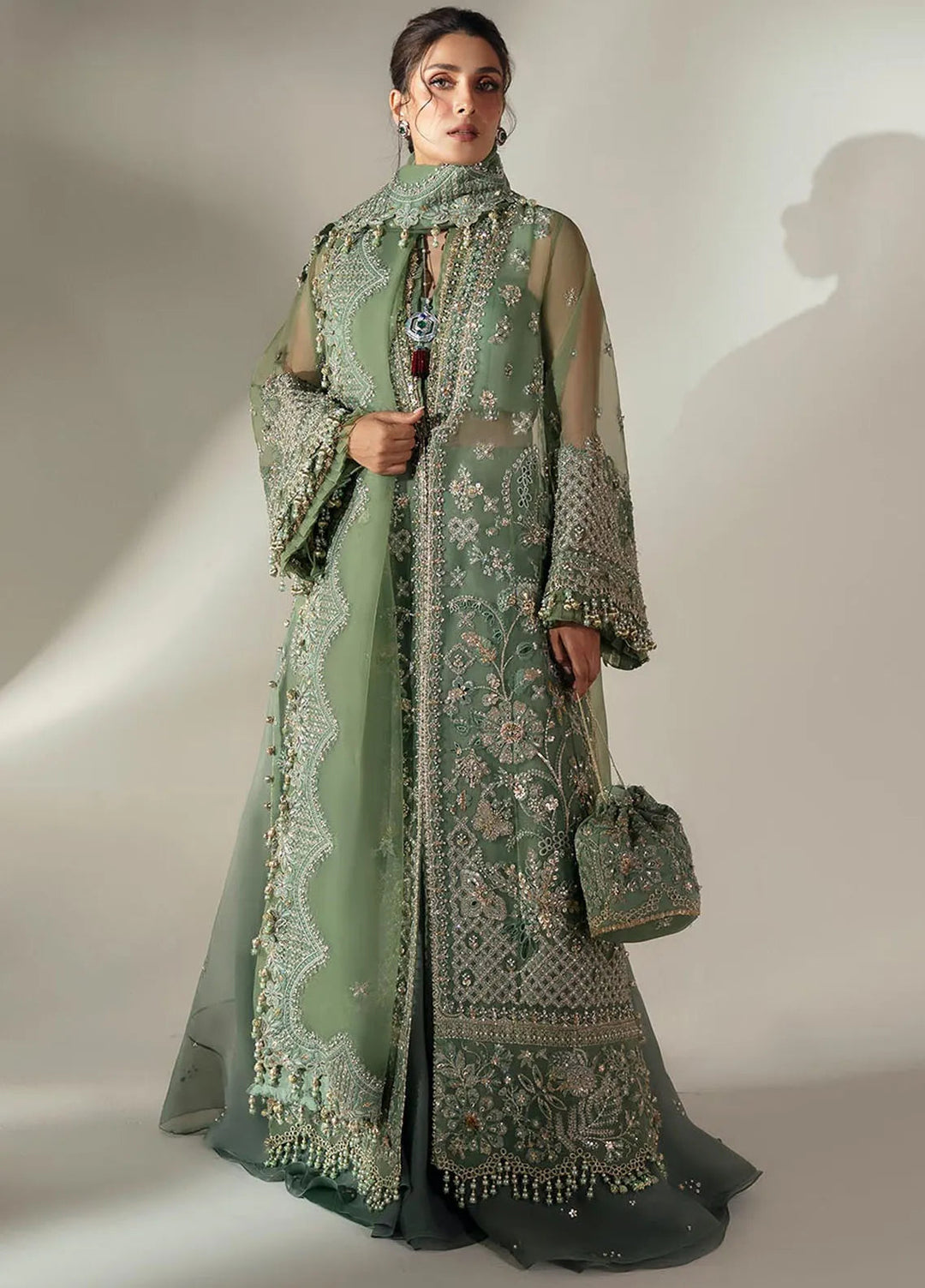 Every girl aims to get the best of bridal dresses to carry on her big day. In Pakistan, there is whole series of brands and designer who bring out the best of their couture bridal collection every year. Elan also stepped in to bring out a wide range of vibrant and stunning bridal dresses this year. This collection is full of soft but ravishing hues. The whole collection comprises of shades of white, beige, silver, gold and ivory. Dress and its fabric is kept full of fine embroidery work including cutwork, pearls, zari work and touch of dapka.
