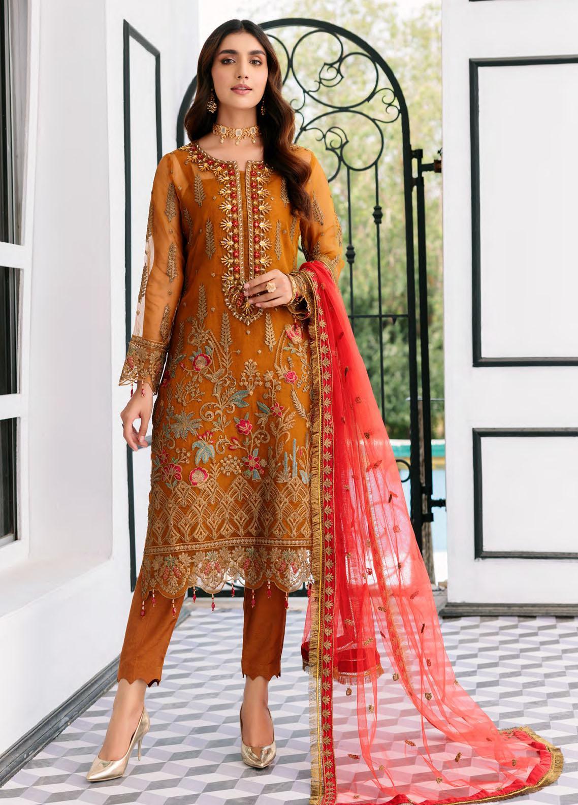 Le Festa By Emaan Adeel Embroidered Organza Suits Unstitched 3 Piece EA22-LF6 LF-605 - Premium Collection