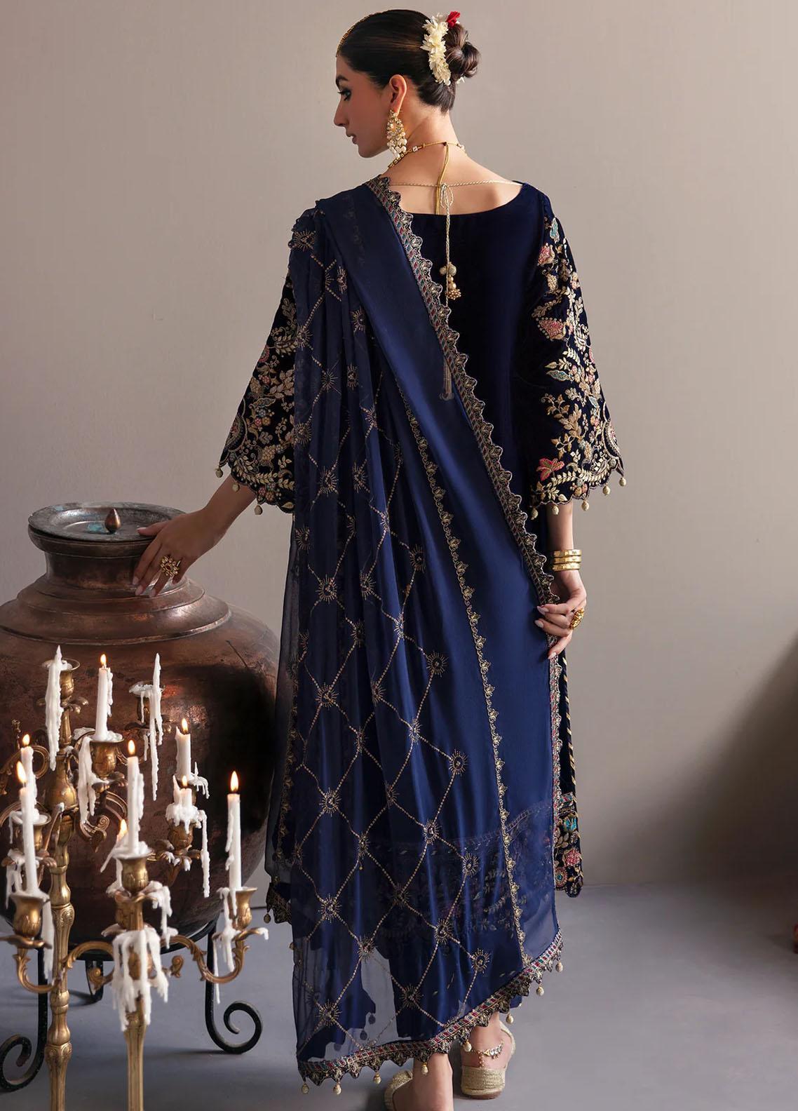 Makhmal By Emaan Adeel Embroidered Velvet Suits Unstitched 3 Piece EA23MK MK-03 Falak - Luxury Winter Collection