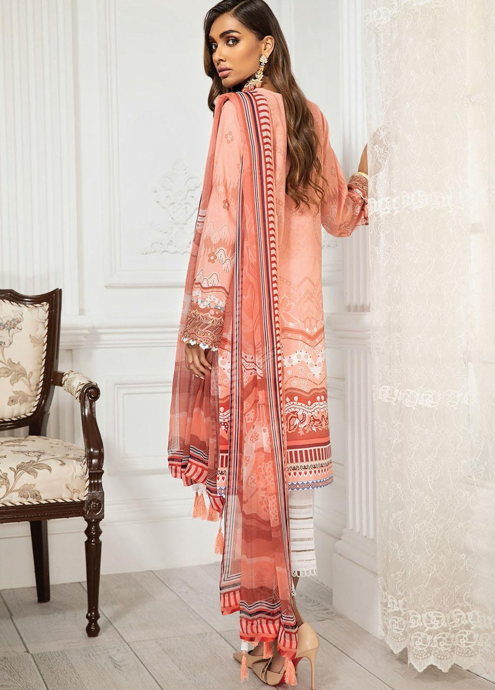 Farasha Embroidered Lawn Suits Unstitched 3 Piece FSH21-L3 04 Peach Peony - Festive Collection