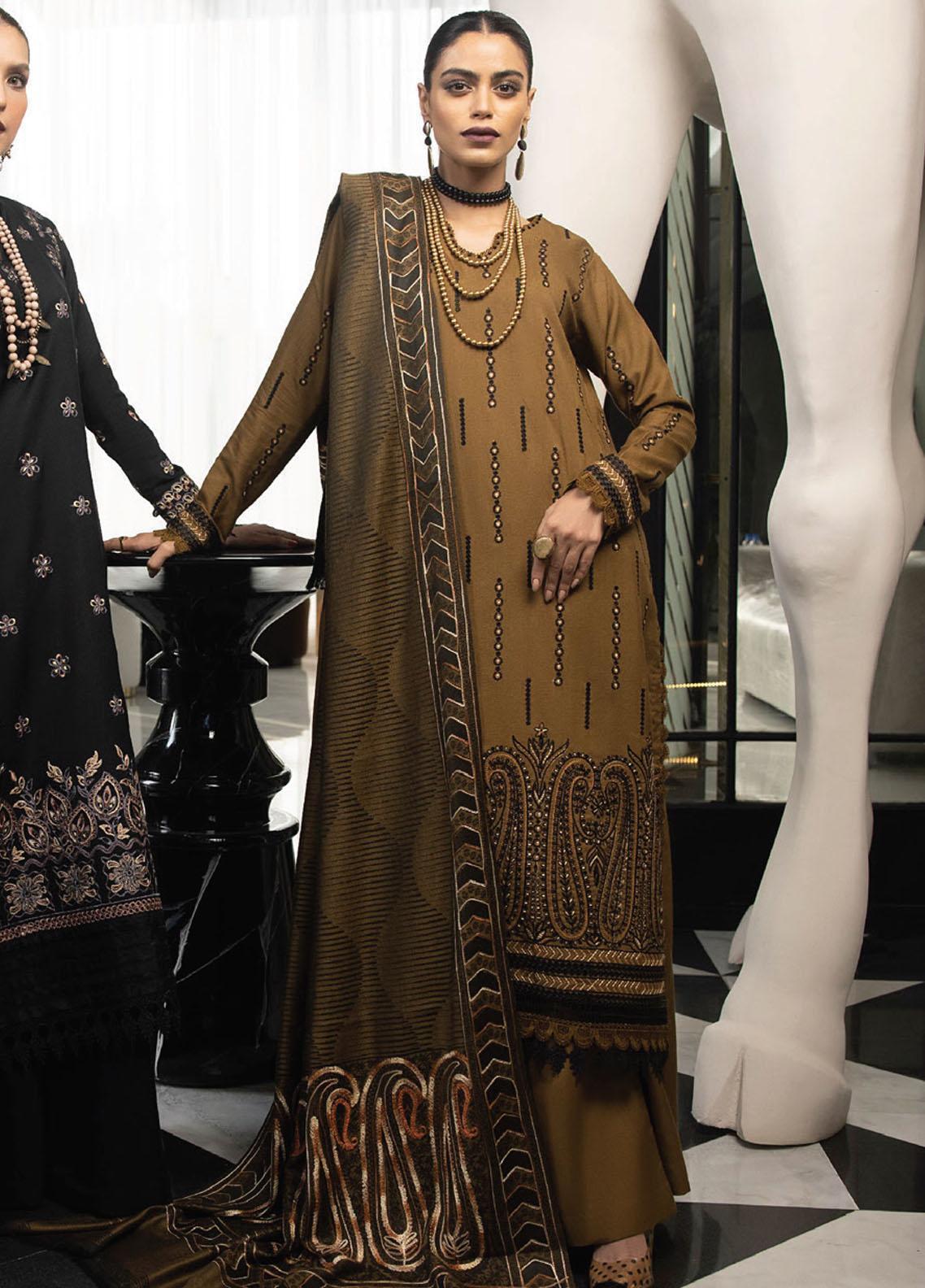 Zimal By Humdum Embroidered Wool Suits Unstitched 3 Piece HD23ZM D-06 - Winter Collection