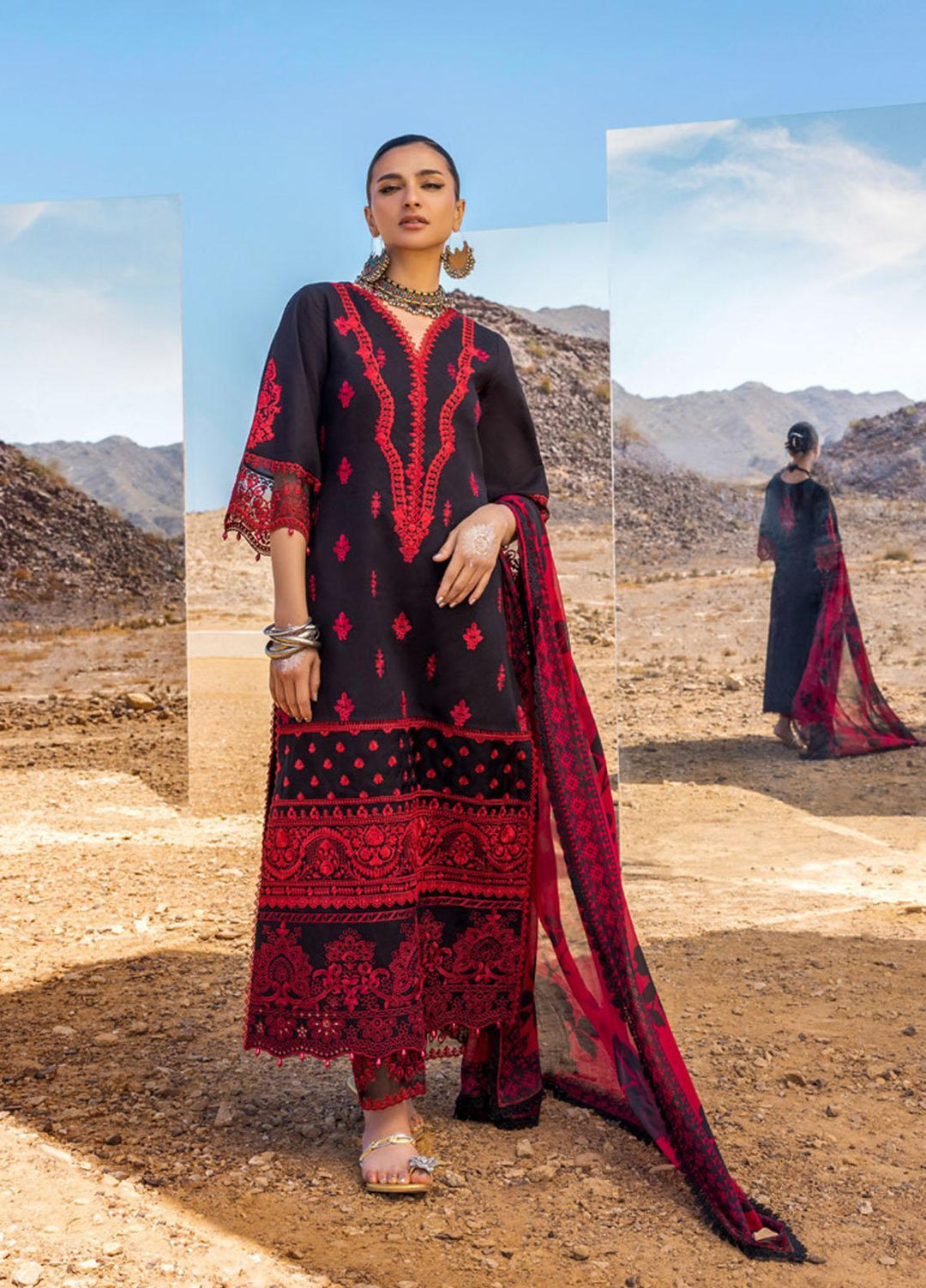 Uraan By Cross Stitch Embroidered Lawn Suits Unstitched 3 Piece CS23U Raven Coal - Premium Collection