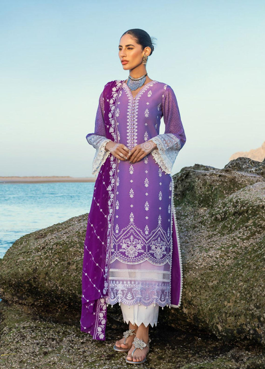 Kesh By Farah Talib Aziz Embroidered Lawn Suits Unstitched 3 Piece FTA23K FTA-04 Zat Lavender - Luxury Collection