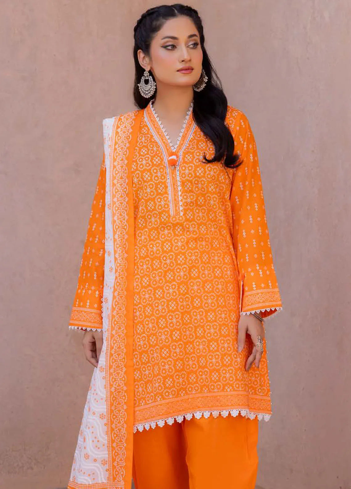 • Lacquer Printed Lawn Dupatta. Printed Lawn Shirt. Dyed Trouser.