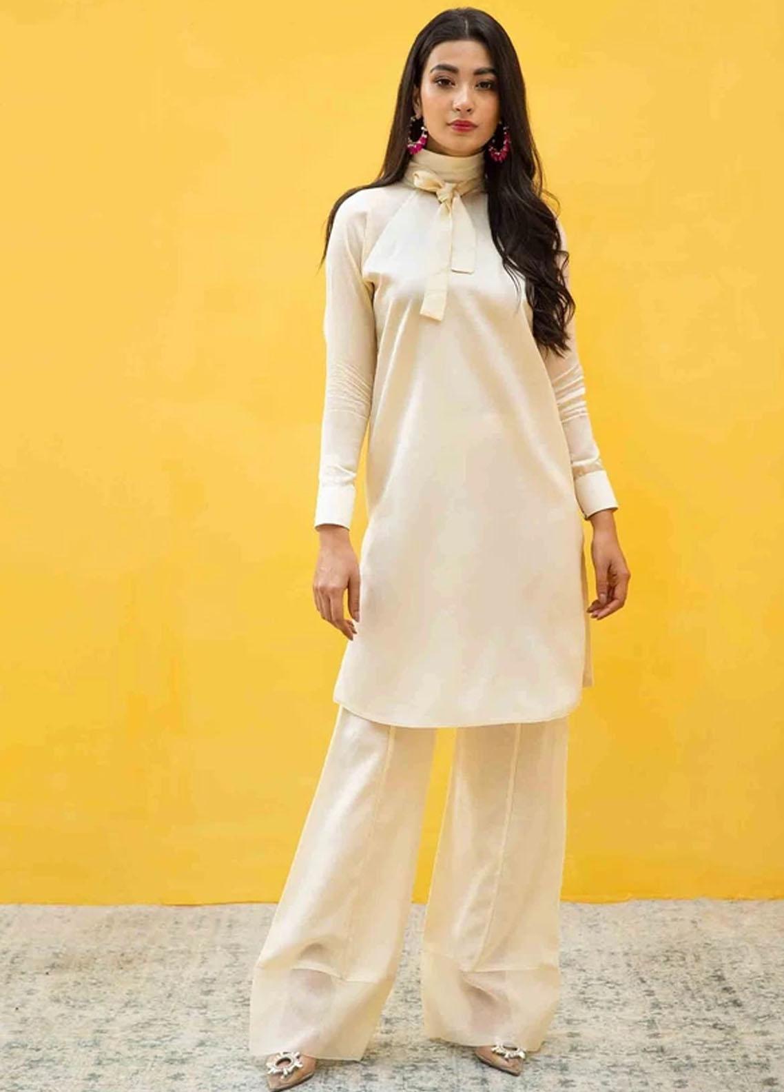 Pearl of wisdom is an absolute perfect dress for any casual occasion. Elegant yet trendy shirt is made in organza satin fabric featuring raglion sleeves and hi band collar details. Pair it with loose cut trouser having organza patch at the bottom with extra piping details at the front