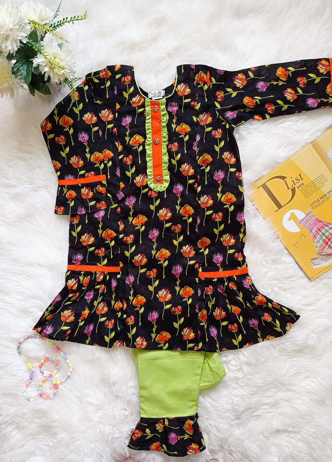 Hiba Clothing Chikankari Fancy 2 Piece Suit for Girls - HME-003 BLACK & ORANGE