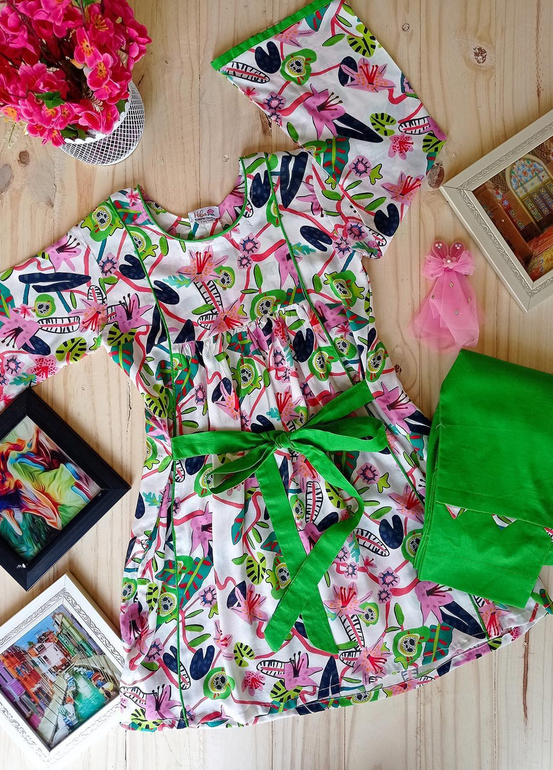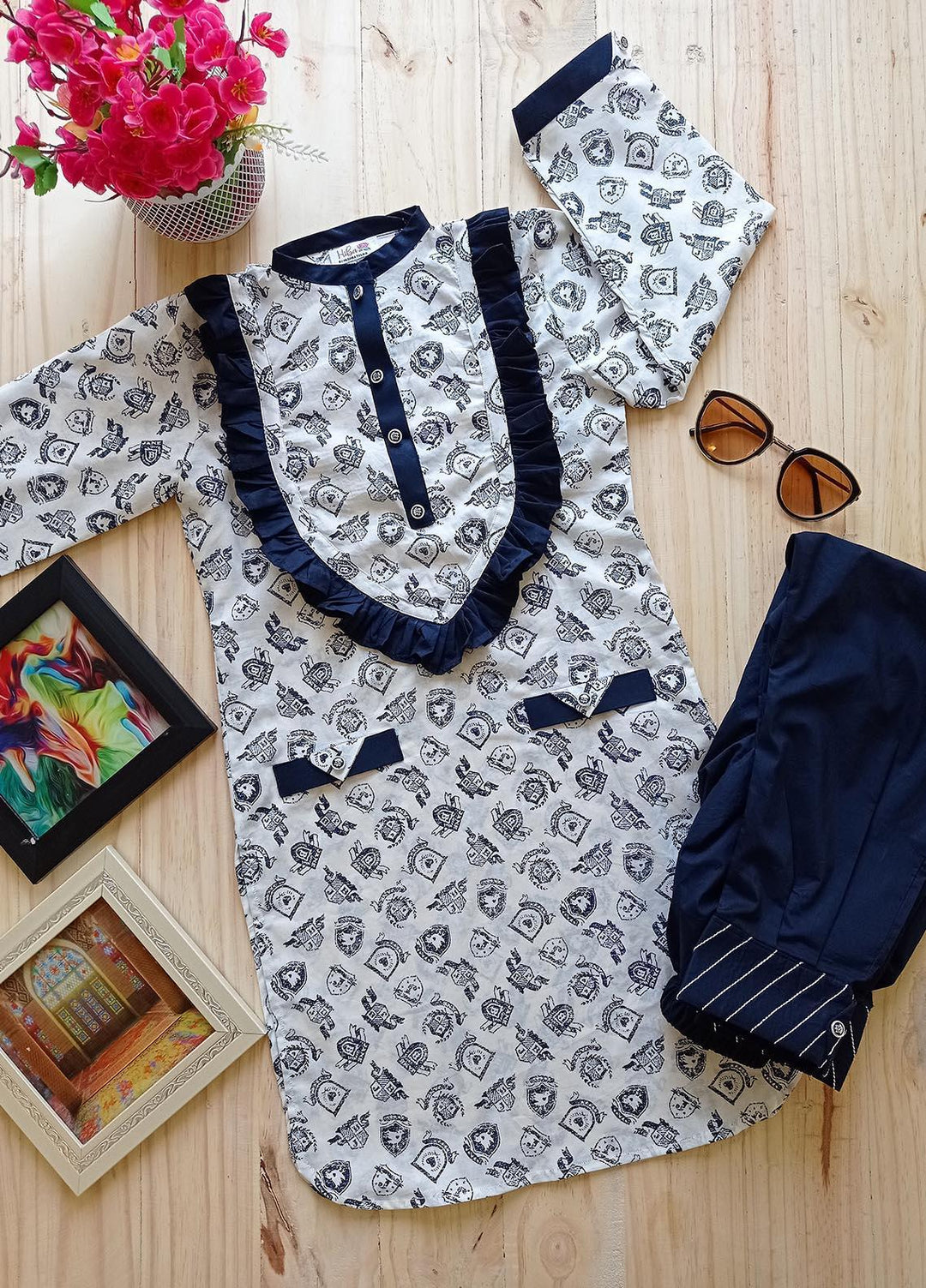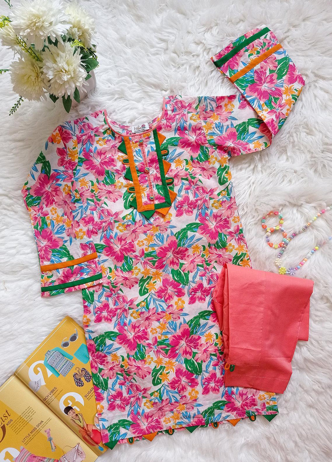Hiba Clothing Cotton Girls 2 Piece Suit - HPW-004 BRANCHES