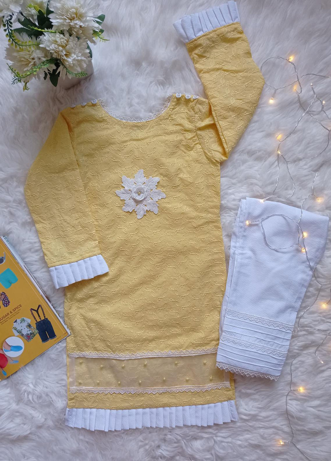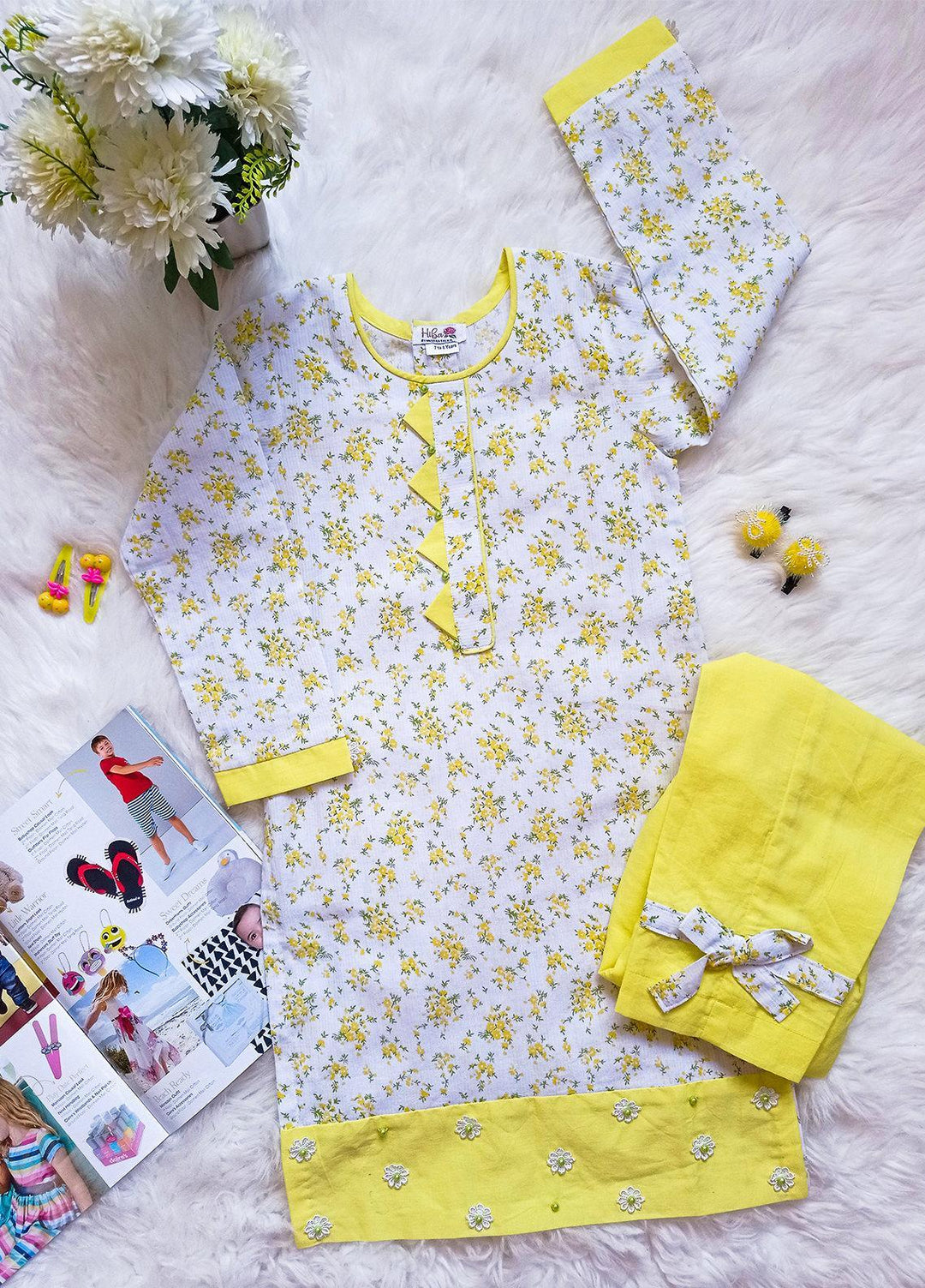 Hiba Clothing Chikankari Fancy Girls 2 Piece Suit - HEC-002 Yellow