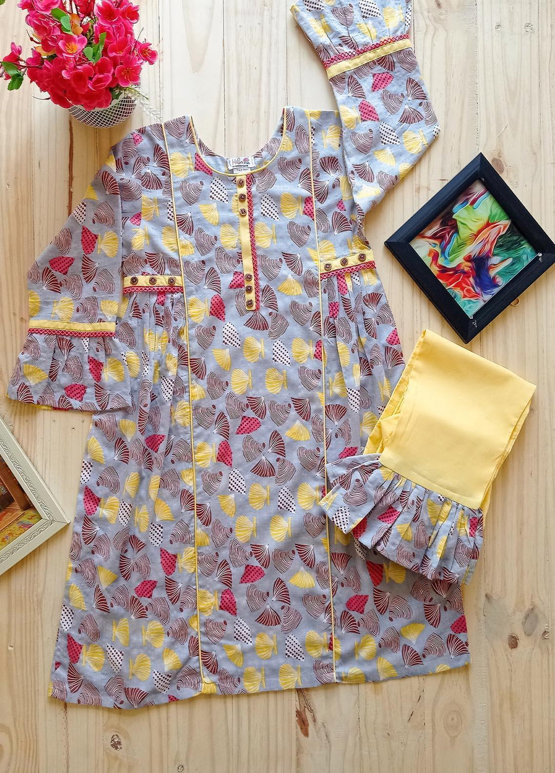 Hiba Clothing Lawn Casual 2 Piece Suit for Girls - HBT-007 Grey Pink
