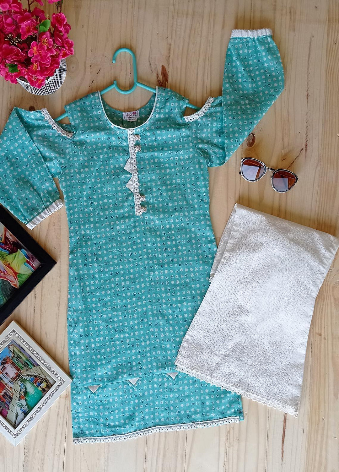 Hiba Clothing Cotton Girls 2 Piece Suit - HPW-006 PEARL GARDEN