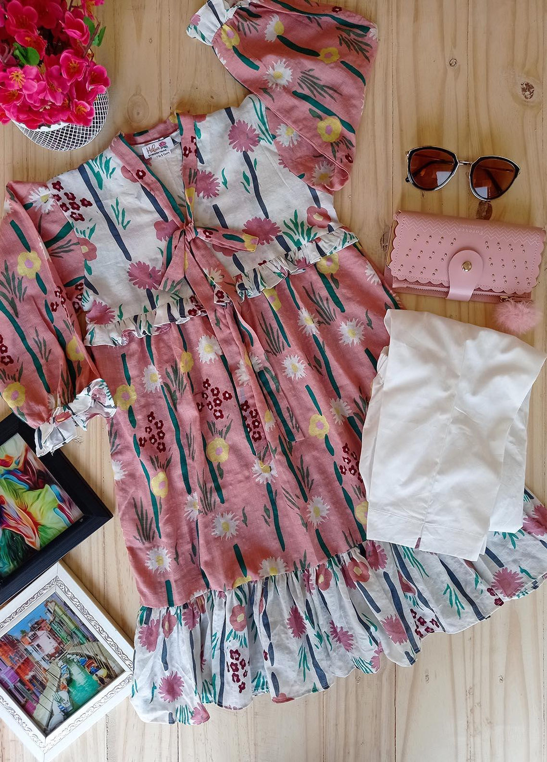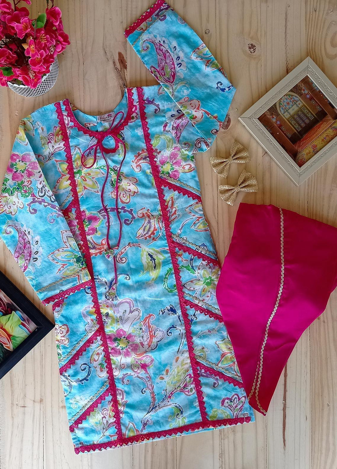 Hiba Clothing Cotton 2 Piece Suit for Girls - HPW-007 PINK PAISLEY