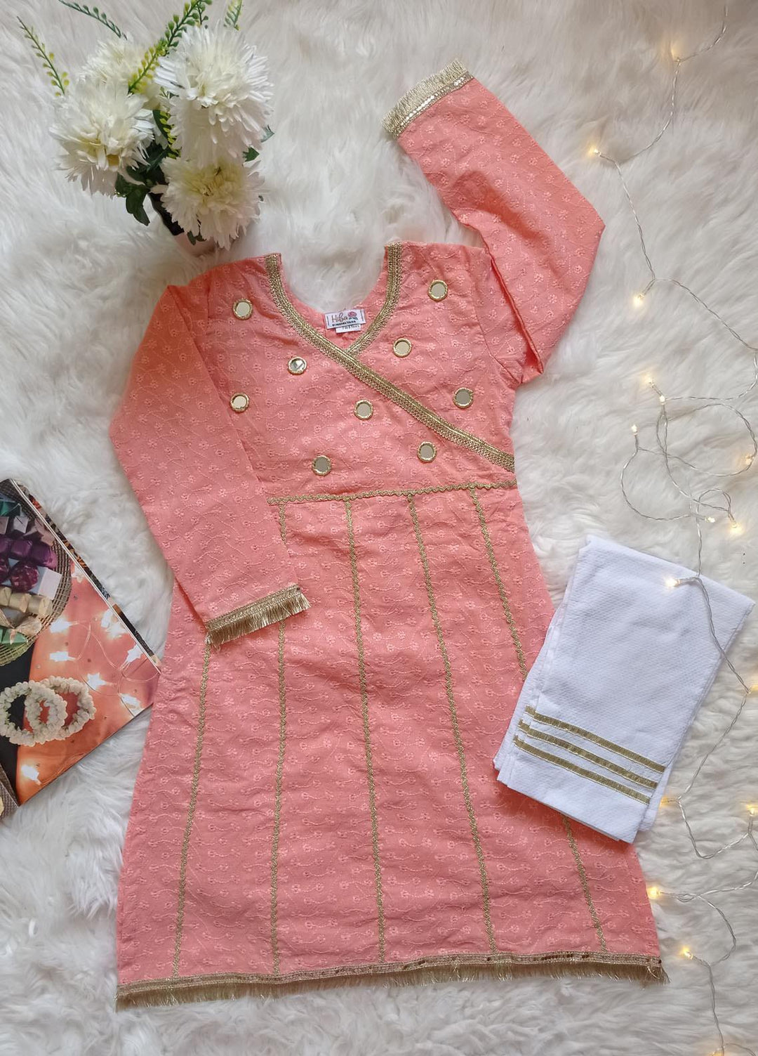 Hiba Clothing Chikankari Fancy 2 Piece Suit for Girls - HEC-001 Peach Mirror