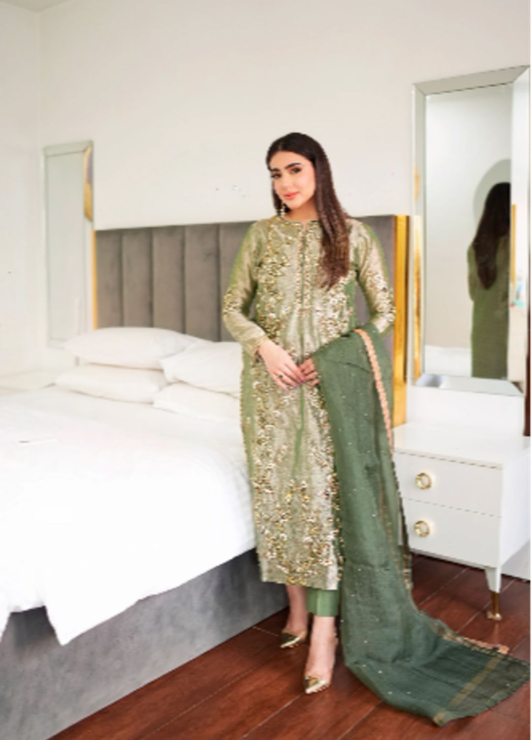 Luxe By Hues Atelier Women Pret 3 Piece Green Tissue Formal - Formals Collection