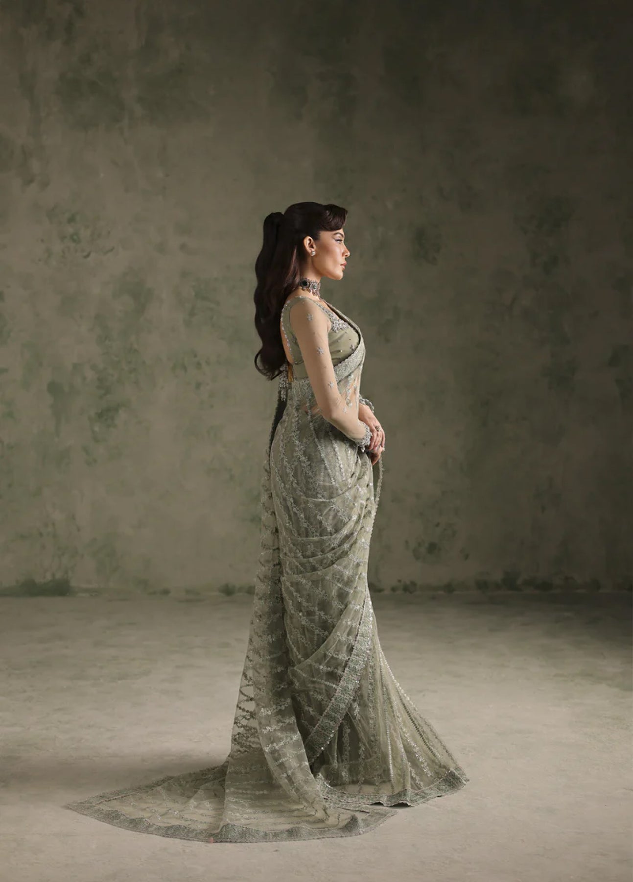 Embroidered Organza With Hand Embellishment neckline
