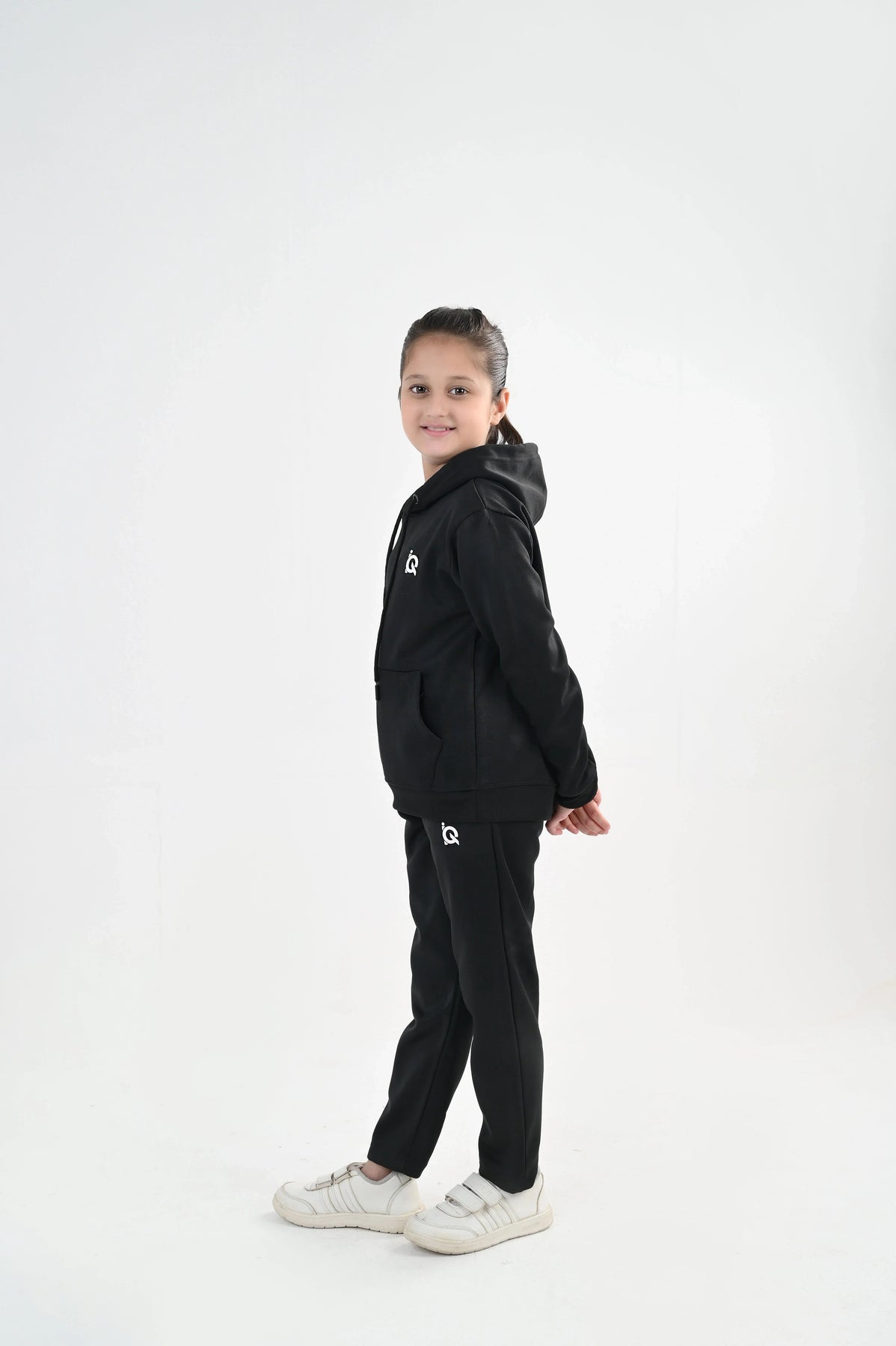Introducing the Black Hoodie Tracksuit - Unisex Kids, perfect for keeping your little ones cozy and stylish during the chilly winter months! This tracksuit is made from soft polyester fleece fabric, providing warmth and comfort. It features a cool black hoodie with a snug fit, ideal for layering up. The tracksuit comes with handy pockets, so kids can carry their small treasures or keep their hands warm. Designed for both boys and girls, it’s a versatile winter outfit that’s perfect for playtime, school, or lounging at home!