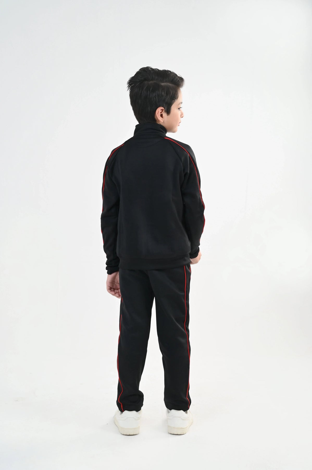 Introducing the Black Horizon Speed Tracksuit - Unisex Kids, a sleek and sporty outfit designed for active little adventurers! Made from high-quality polyester fleece fabric, this tracksuit keeps kids warm and comfortable while they run, play, or explore. Its modern design features a black jacket with bold horizon-inspired details, adding a touch of speed and style. With functional pockets, kids can easily store small essentials or warm their hands on the go. Suitable for both boys and girls, this tracksuit is perfect for energetic play, sports, or casual wear during colder months!