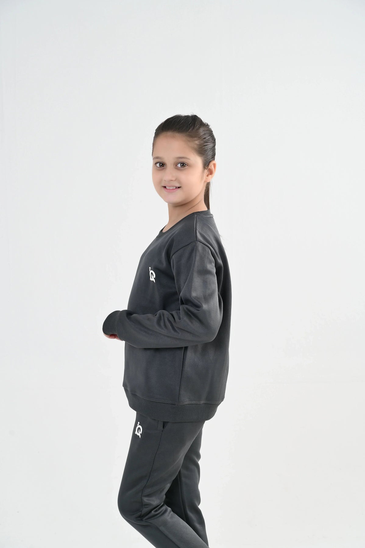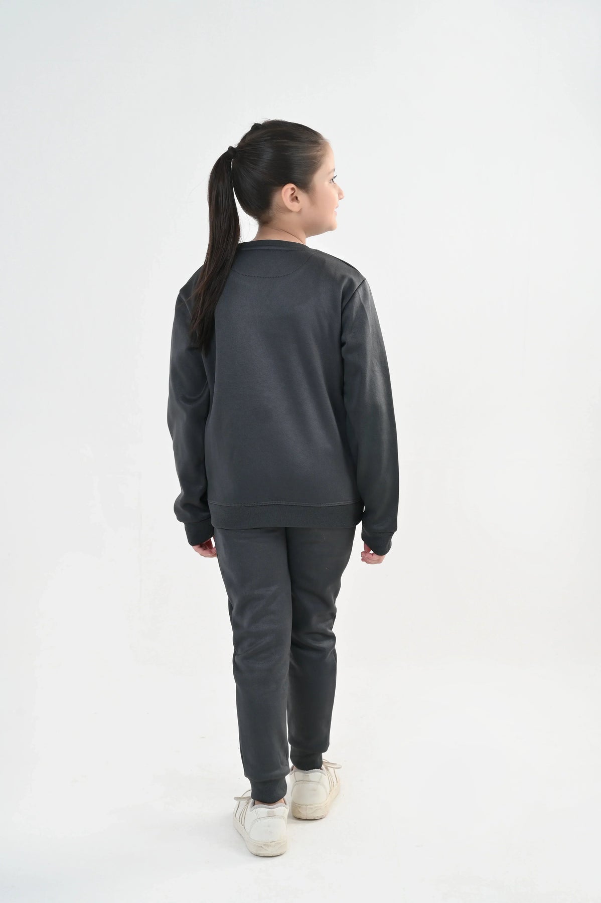 Introducing the Grey Comfort Sweatshirt Tracksuit - Unisex Kids, the ultimate cozy outfit for your child's winter adventures! Crafted from soft polyester fleece fabric, this tracksuit offers exceptional warmth and comfort, perfect for those chilly days. The classic grey color adds a timeless touch, while the relaxed fit ensures easy movement for active kids. Featuring a comfy sweatshirt and matching pants, with handy pockets, this tracksuit is ideal for storing small treasures or warming hands. Suitable for both boys and girls, the Grey Comfort Sweatshirt Tracksuit is perfect for school, outdoor play, or lounging at home, making it a versatile addition to any winter wardrobe!