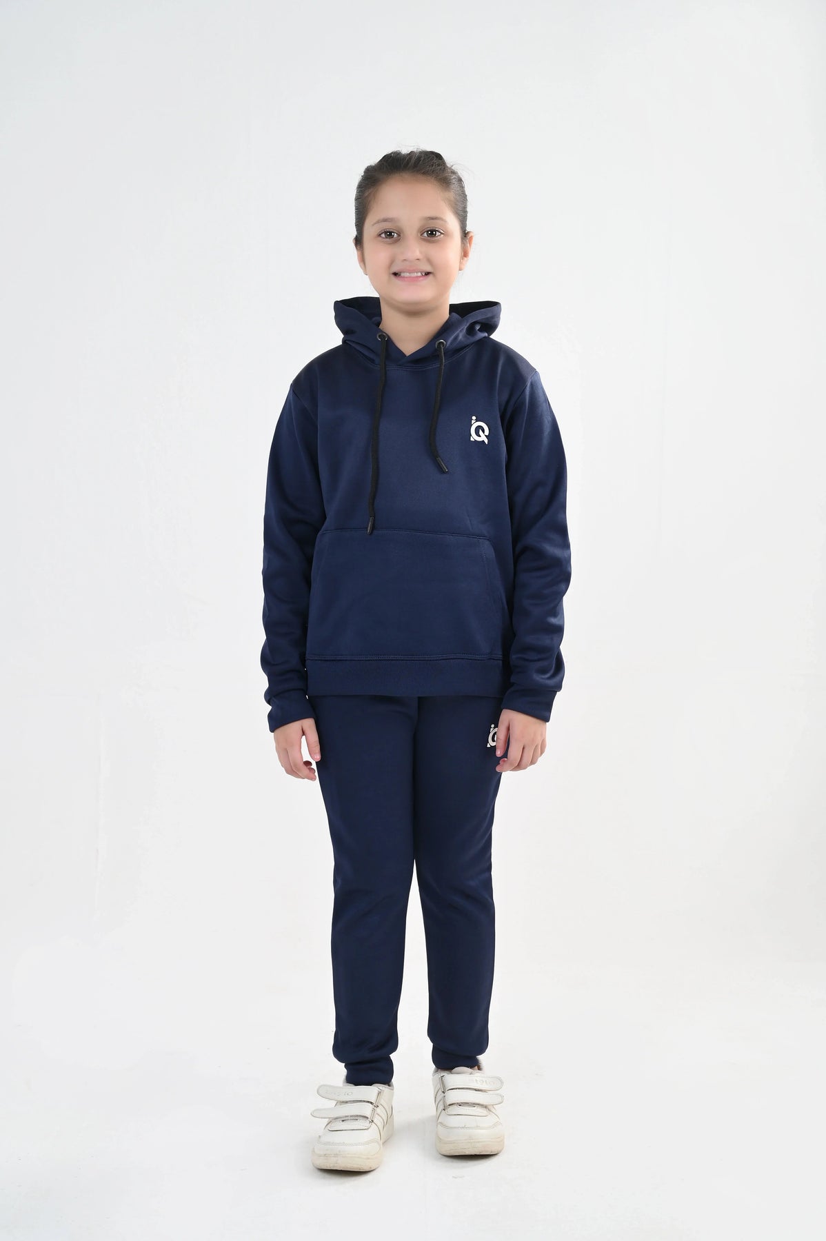 Introducing the Navy Bliss Hoodie Tracksuit - Unisex Kids, a cozy and stylish outfit perfect for your little ones! Crafted from soft polyester fleece fabric, this tracksuit provides warmth and comfort for all their winter activities. The rich navy blue color exudes a classic charm, while the comfy hoodie adds an extra layer of coziness. With functional pockets for keeping small treasures or warming hands, this tracksuit combines practicality with style. Suitable for both boys and girls, the Navy Bliss Hoodie Tracksuit is ideal for outdoor play, family outings, or lounging at home, making it a versatile addition to any winter wardrobe!