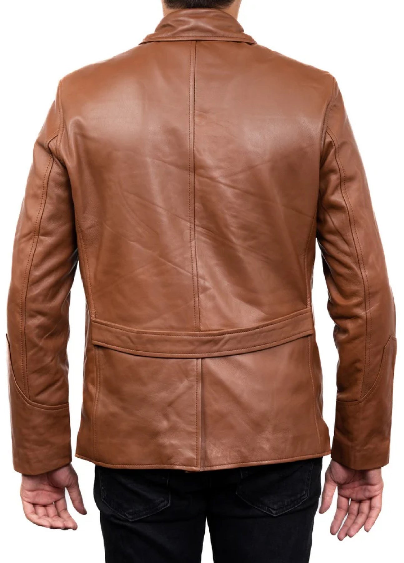 Jild Leathers 5-Button Men Lambskin Leather Blazer-Cognac - Blazers And Coats Collection