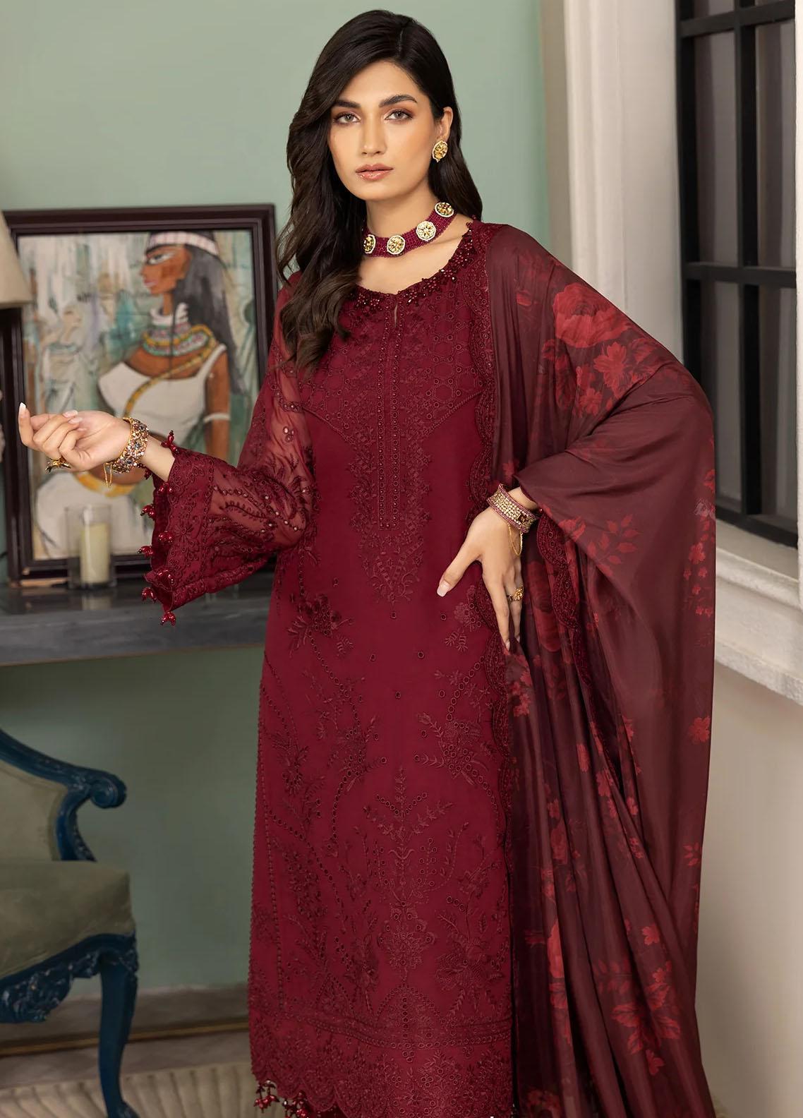 Dhaagay By Alizeh Fashion Embroidered Chiffon Suits Unstitched 3 Piece AFB23D-V2 D-07 Azalea - Formal Collection