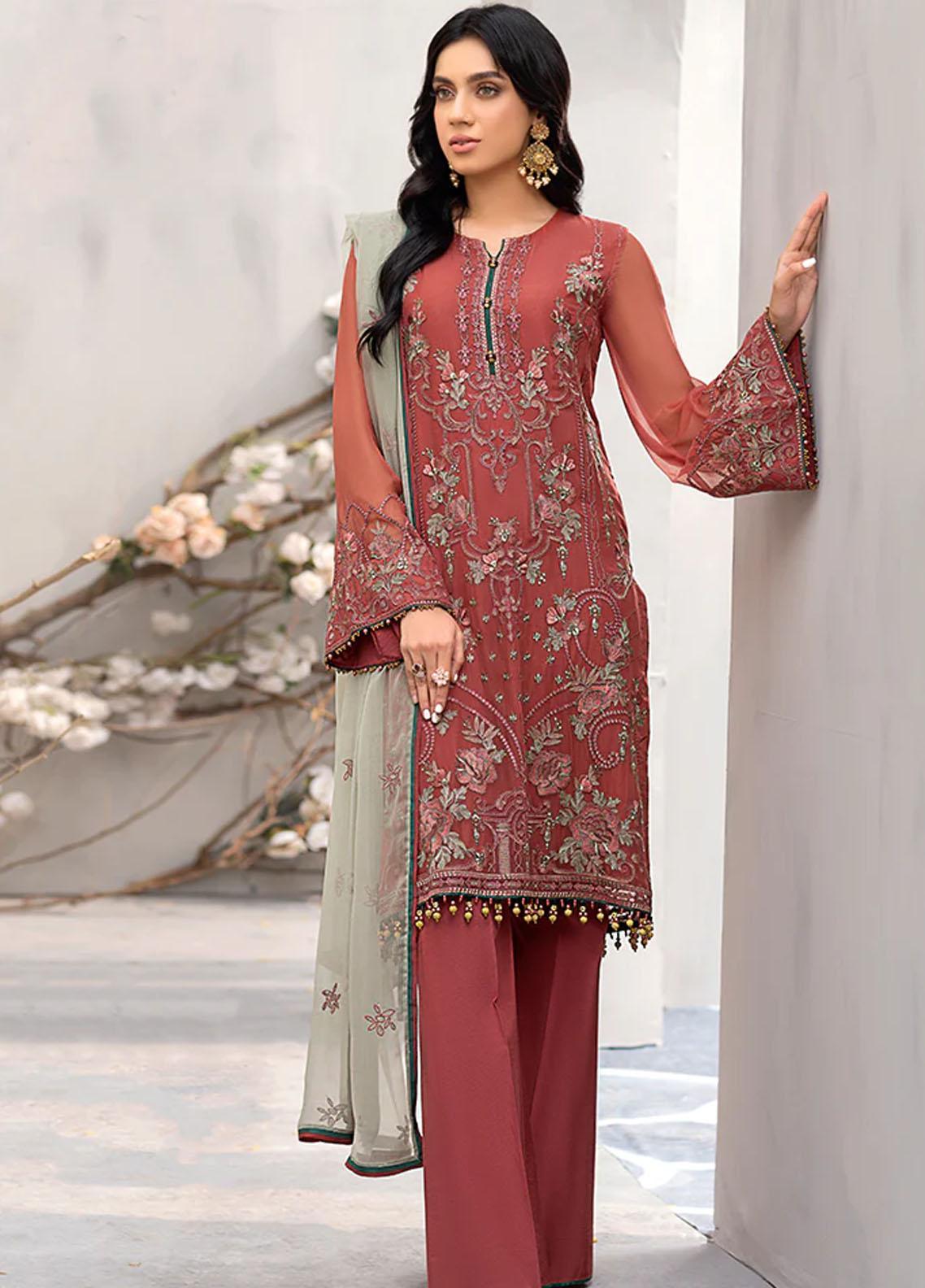 3 Piece Embroidered Chiffon Suit