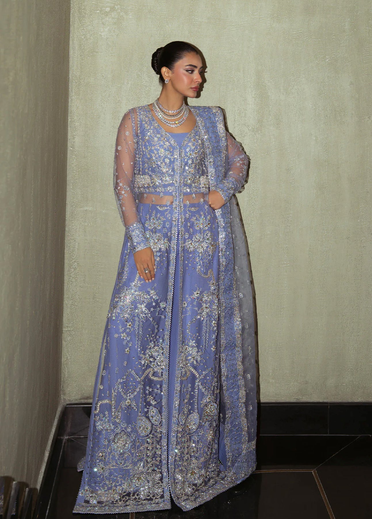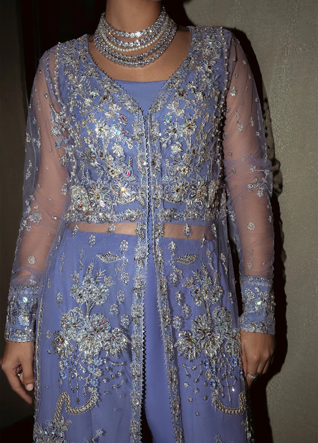 • EMBROIDERED AND HAND EMBELISHED NET LEFT PANEL.(1-PIECE)