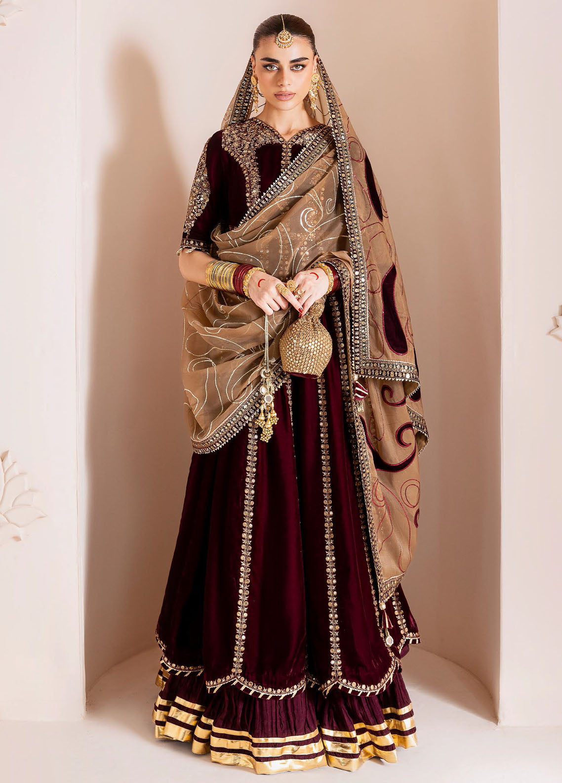 Embroidered Pure Velvet Sleeves & Sleeves Border