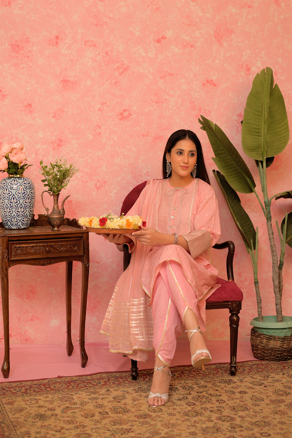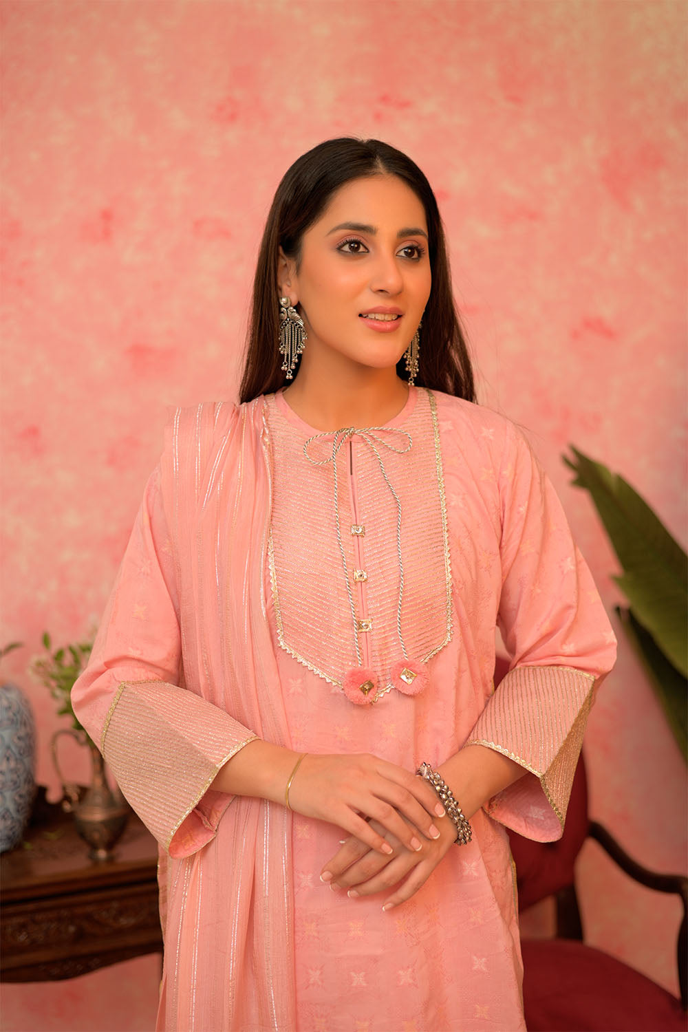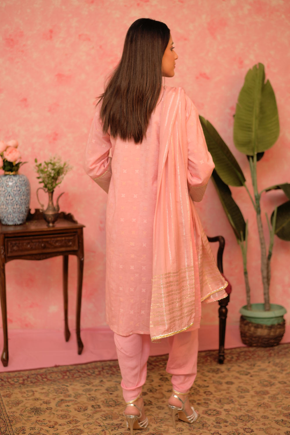 Senorita Women RTW Women Solids Pink and Gold Casual Plus 3 Piece Suit Cotton Viscose Filament Jacquard LBD-02893 - Winter Collection