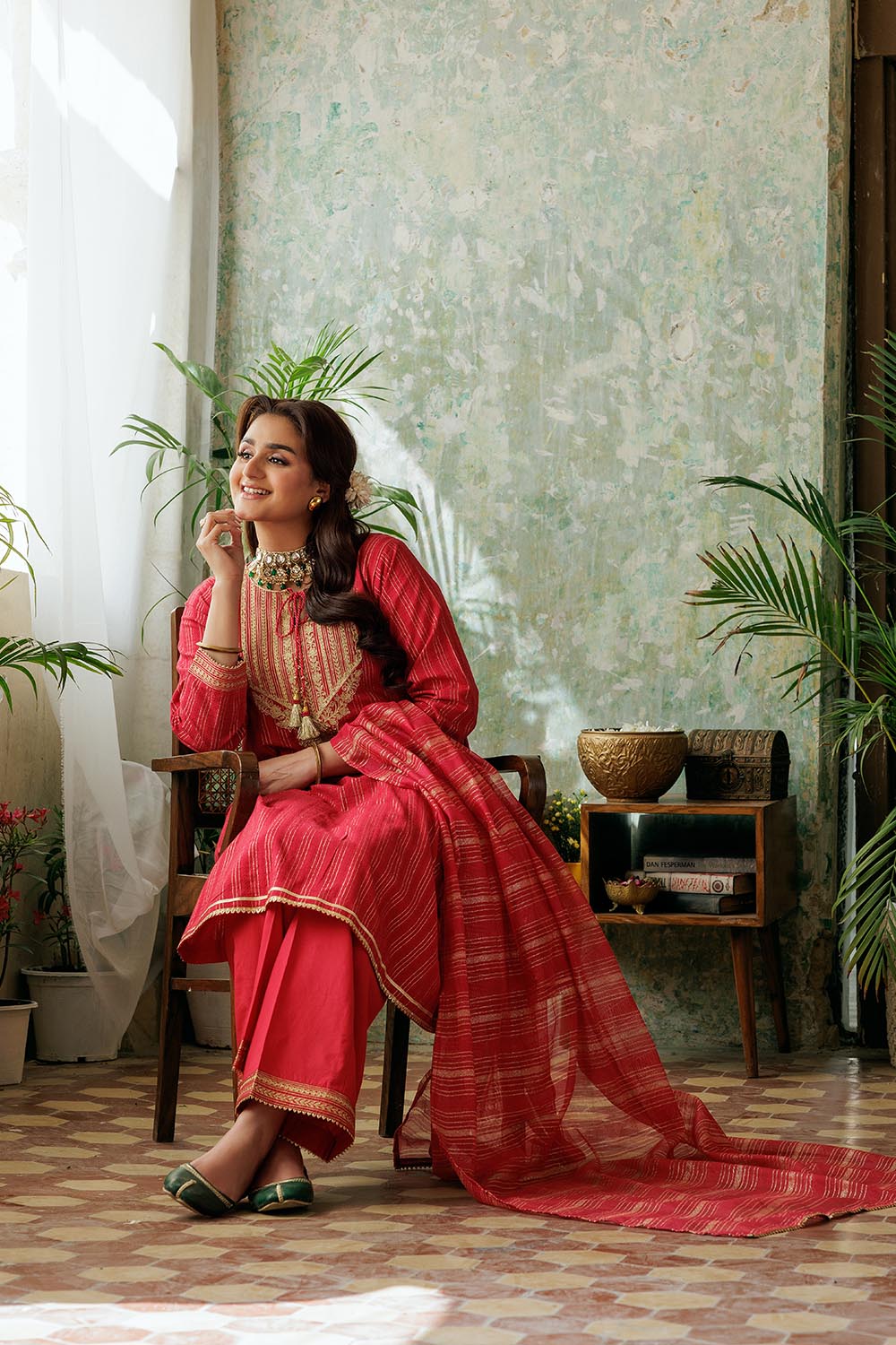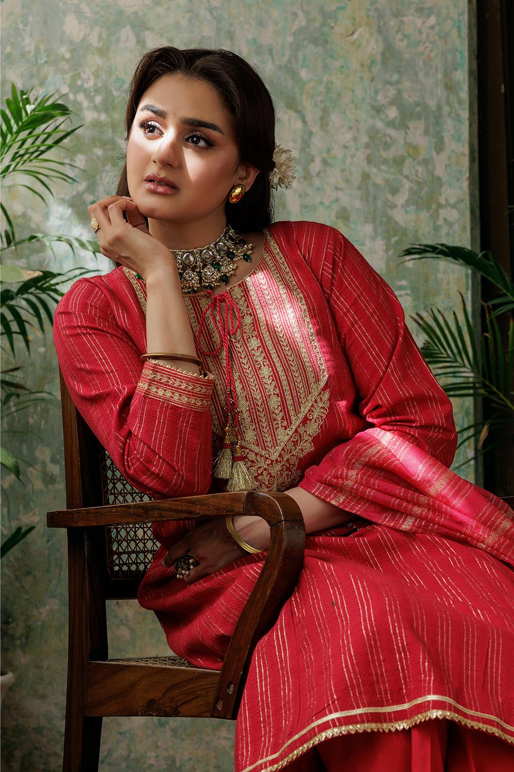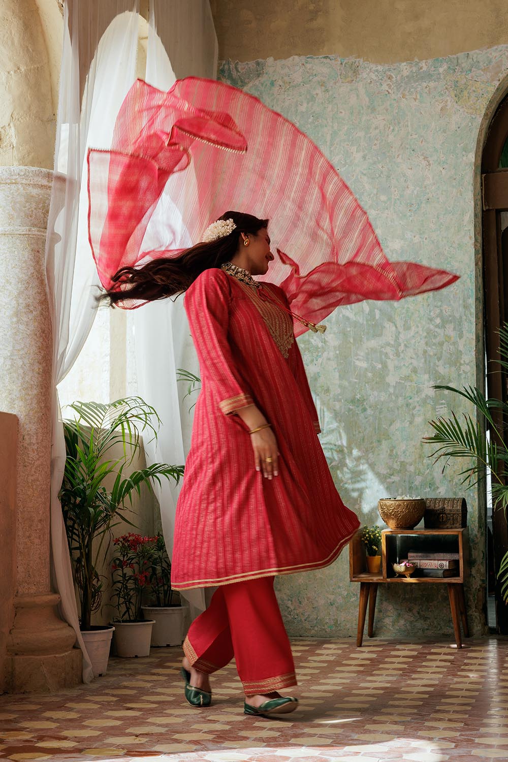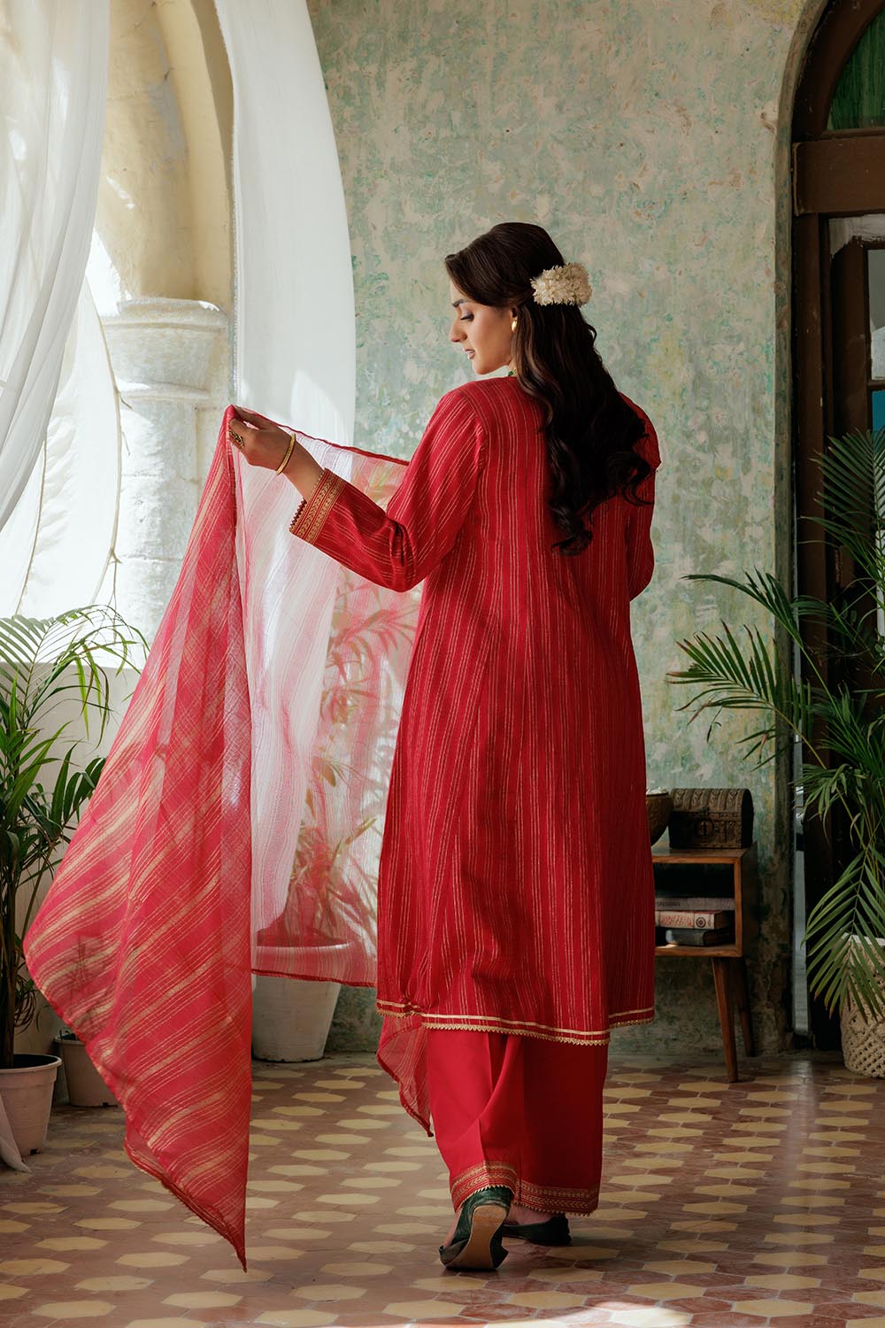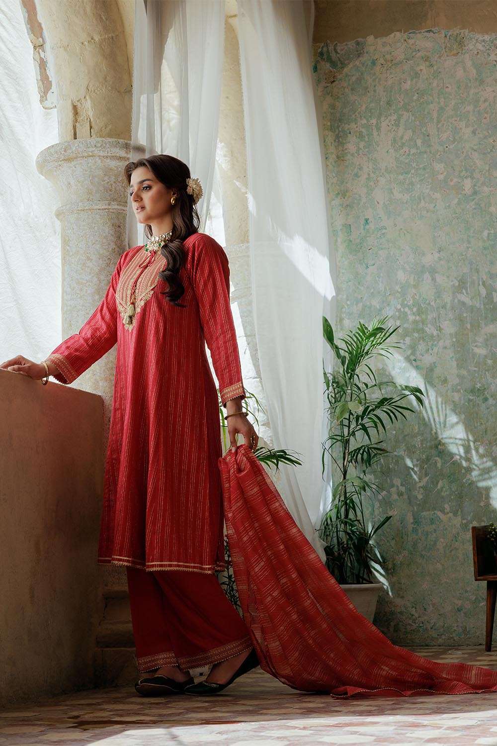 Senorita Women RTW Women Solids Red and Gold Casual Plus 3 Piece Suit Cotton Dobby LBD-02974 - Winter Collection