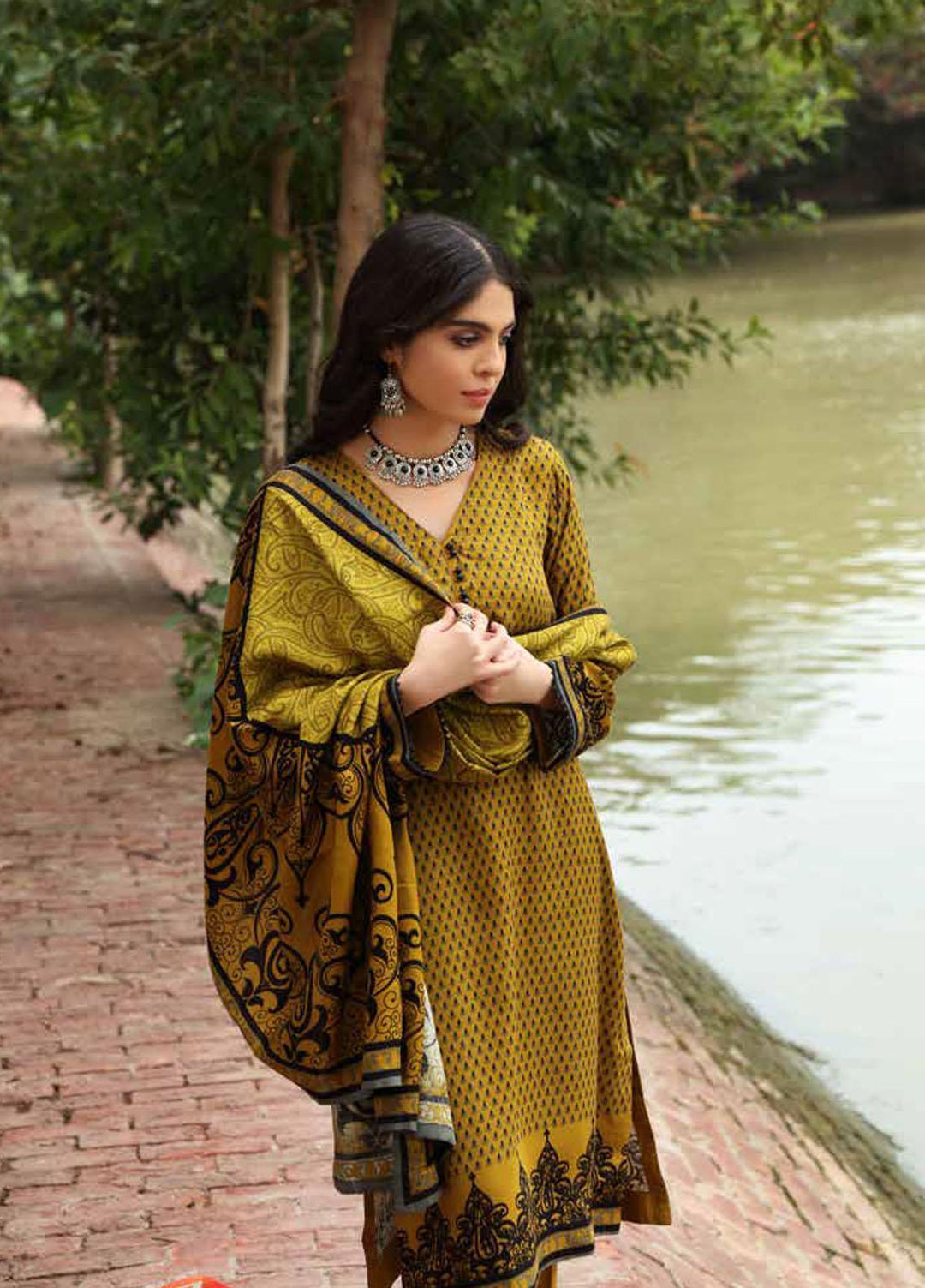 Al Karam Printed Twill Viscose Suits Unstitched 3 Piece AK21W FW-9.1-21 Yellow - Winter Collection