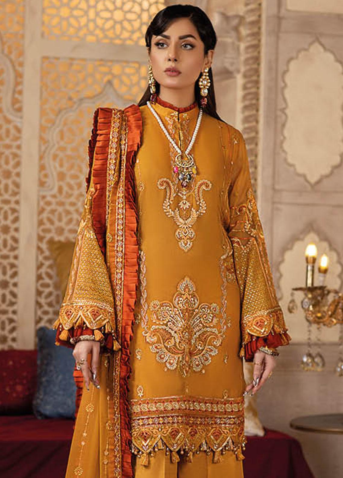 Safiinah By Resham Raaj Embroidered Chiffon Suits Unstitched 3 Piece RMR23S RR-03 Kaisari - Luxury Collection