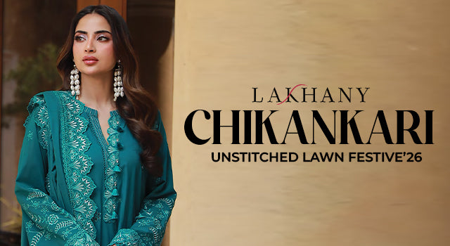 Lakhany’s unstitched segment focuses heavily on lawn, offering printed and embroidered options suitable for daily wear, semi-formal gatherings, and festive summer occasions. These collections feature breathable cotton lawn paired with embroidered panels and coordinated dupattas, allowing flexibility in styling and tailoring.