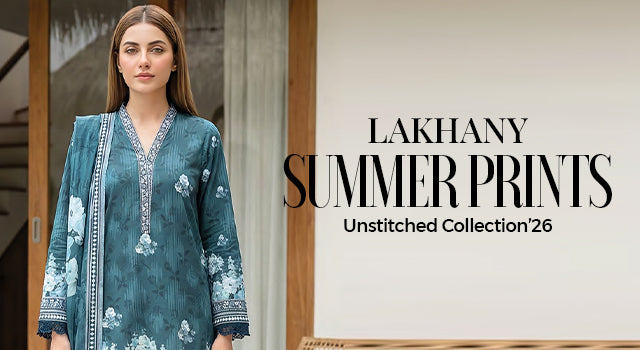Lakhany’s unstitched segment focuses heavily on lawn, offering printed and embroidered options suitable for daily wear, semi-formal gatherings, and festive summer occasions. These collections feature breathable cotton lawn paired with embroidered panels and coordinated dupattas, allowing flexibility in styling and tailoring.