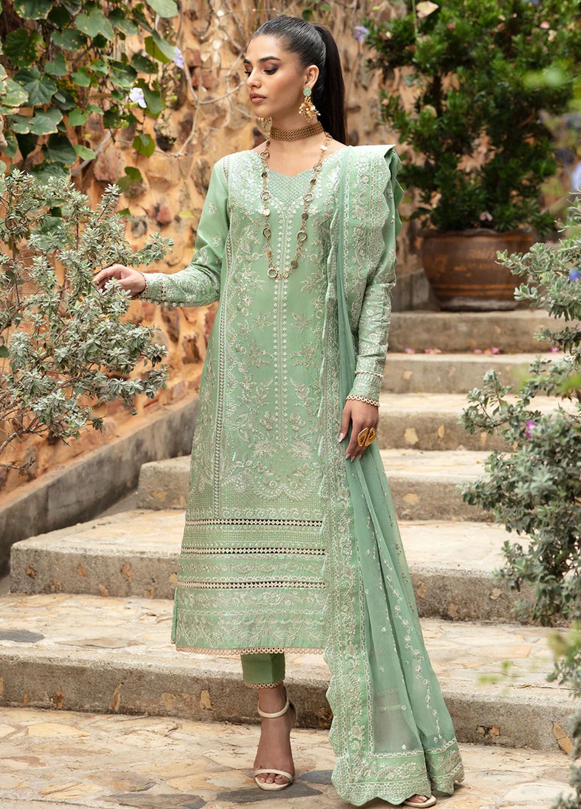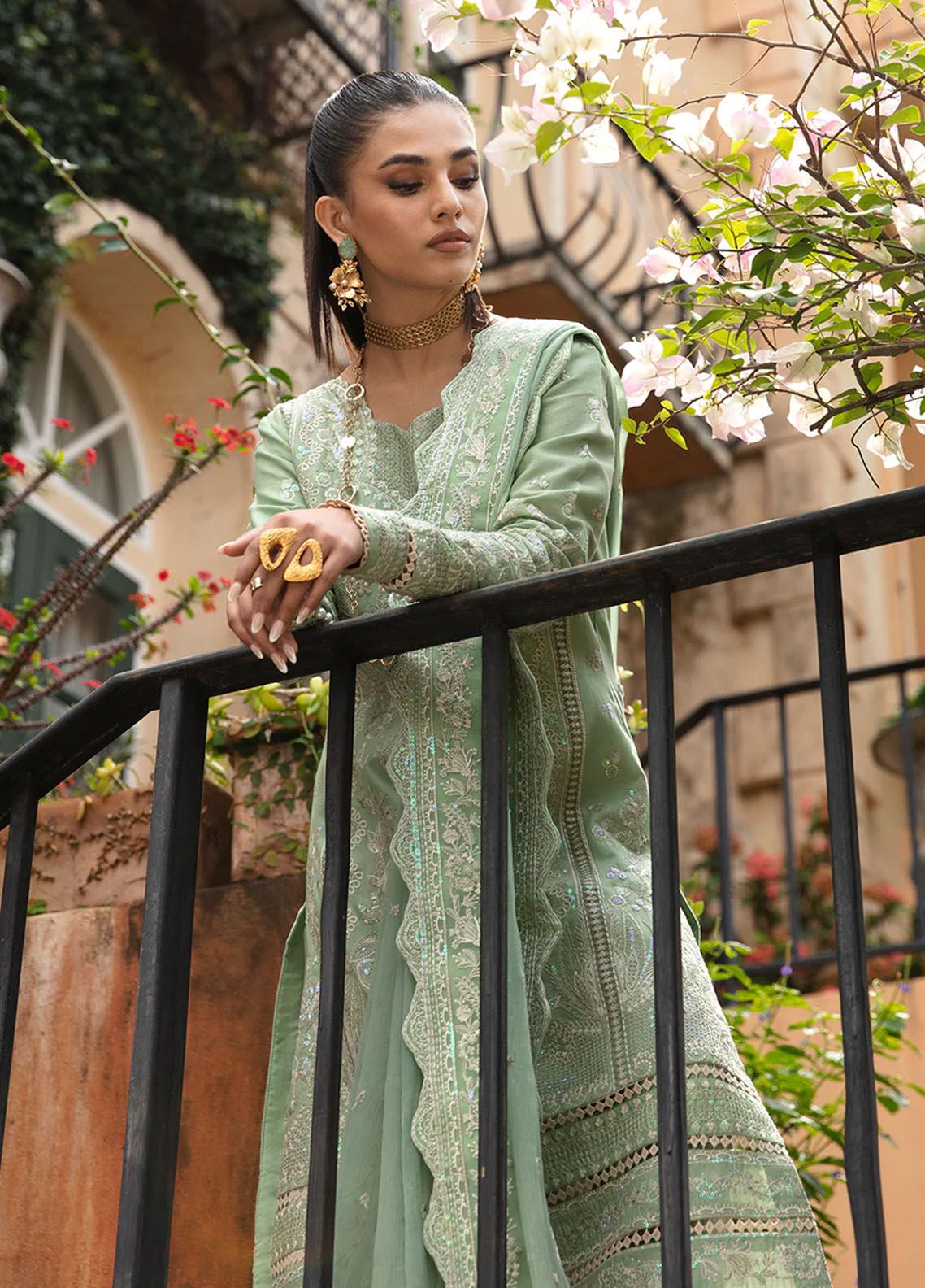 • Embroidered and sequined ribbed lawn border for sleeves