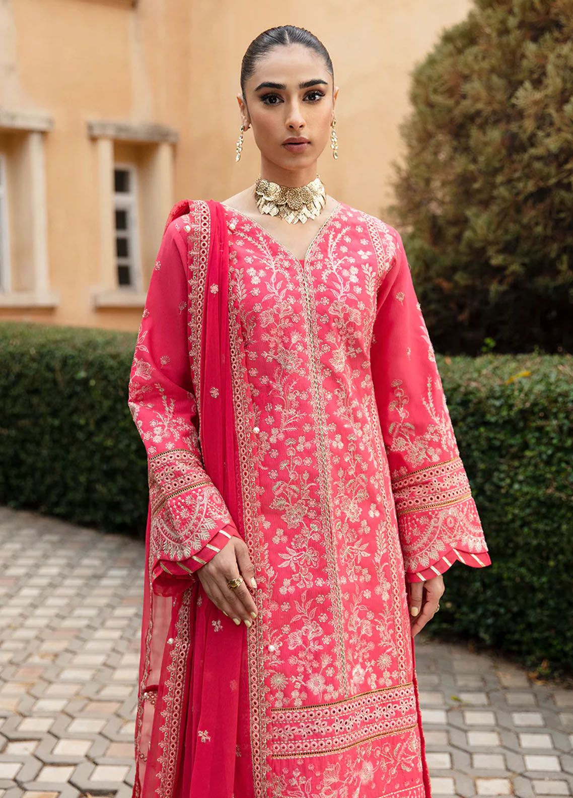 • Embroidered and sequined ribbed lawn border for sleeves B