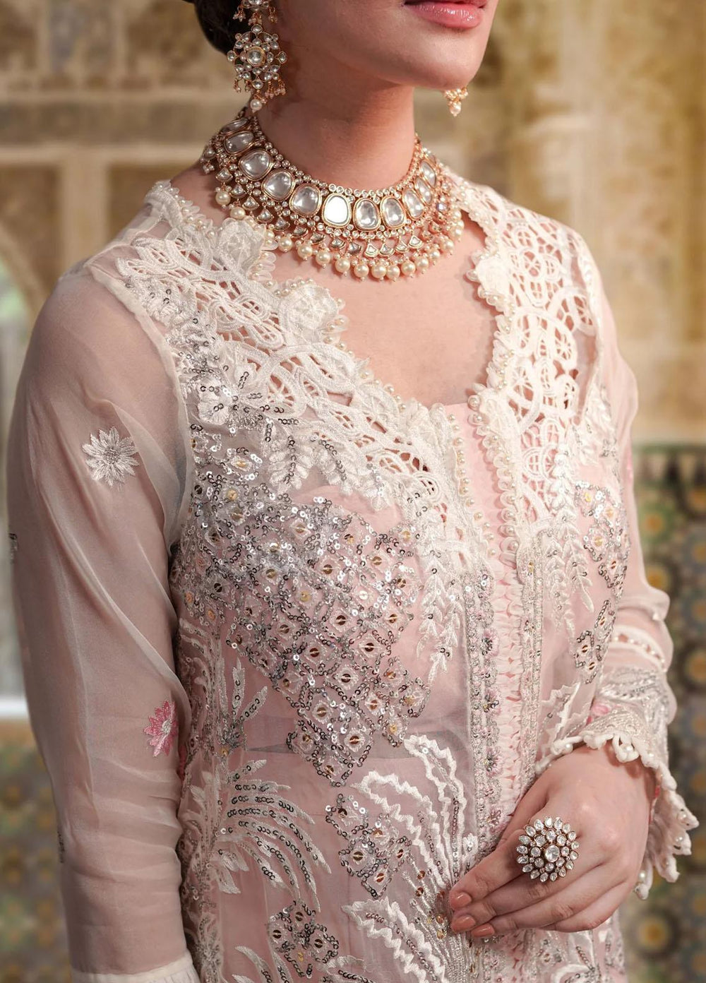 Embroidered Neckline Bunches On Orgazan W 4Inche X H11Inche 02