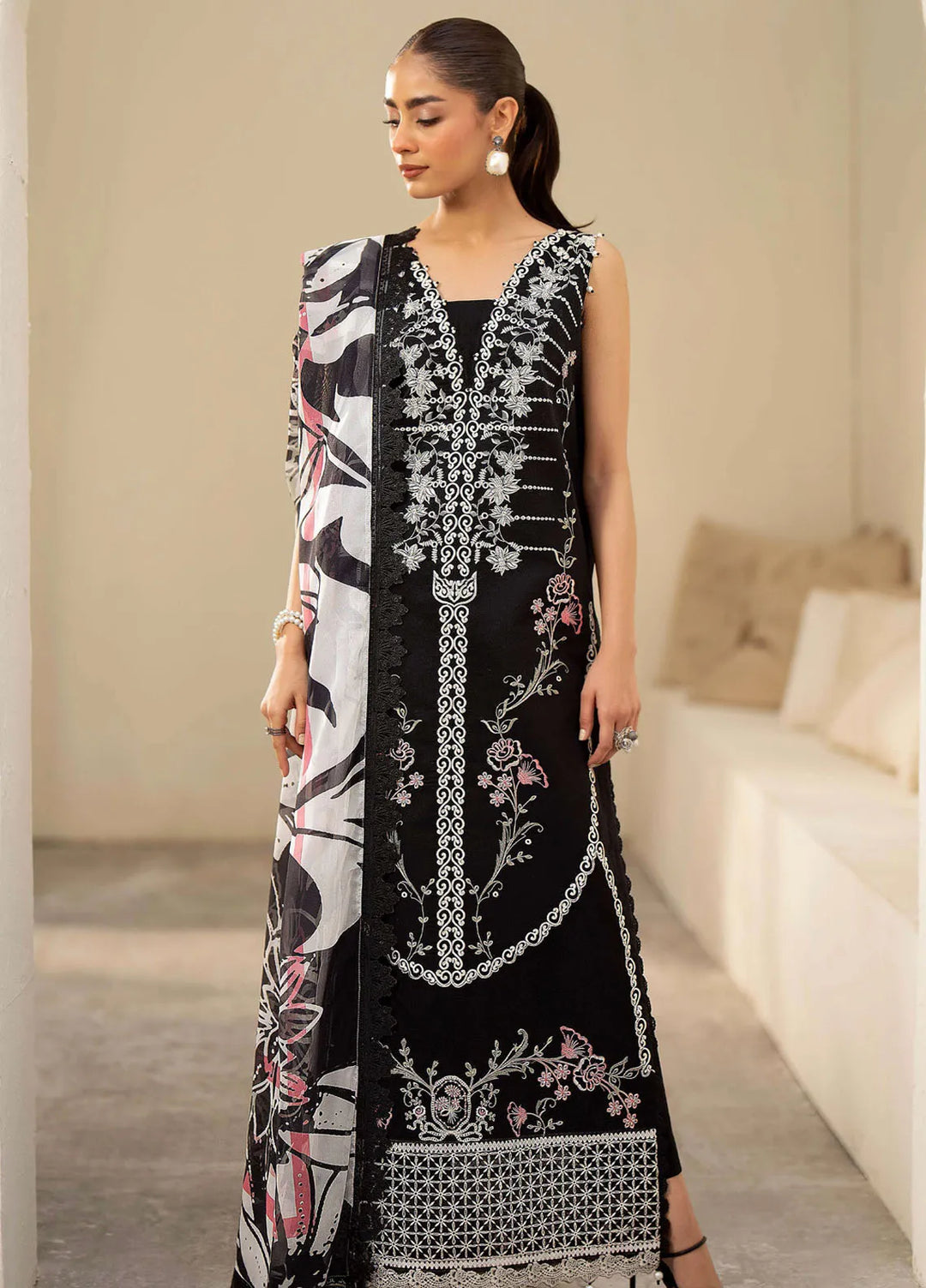Ayla Studio Pret Embroidered Organza 3 Piece Suit KH-001 Black Garden