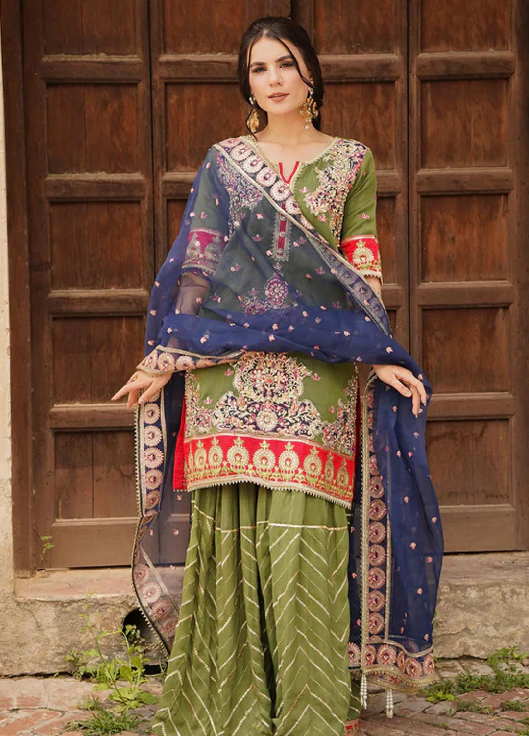 Dhanak By Ayat Pret Embroidered Net 3 Piece Suit Zaitoon