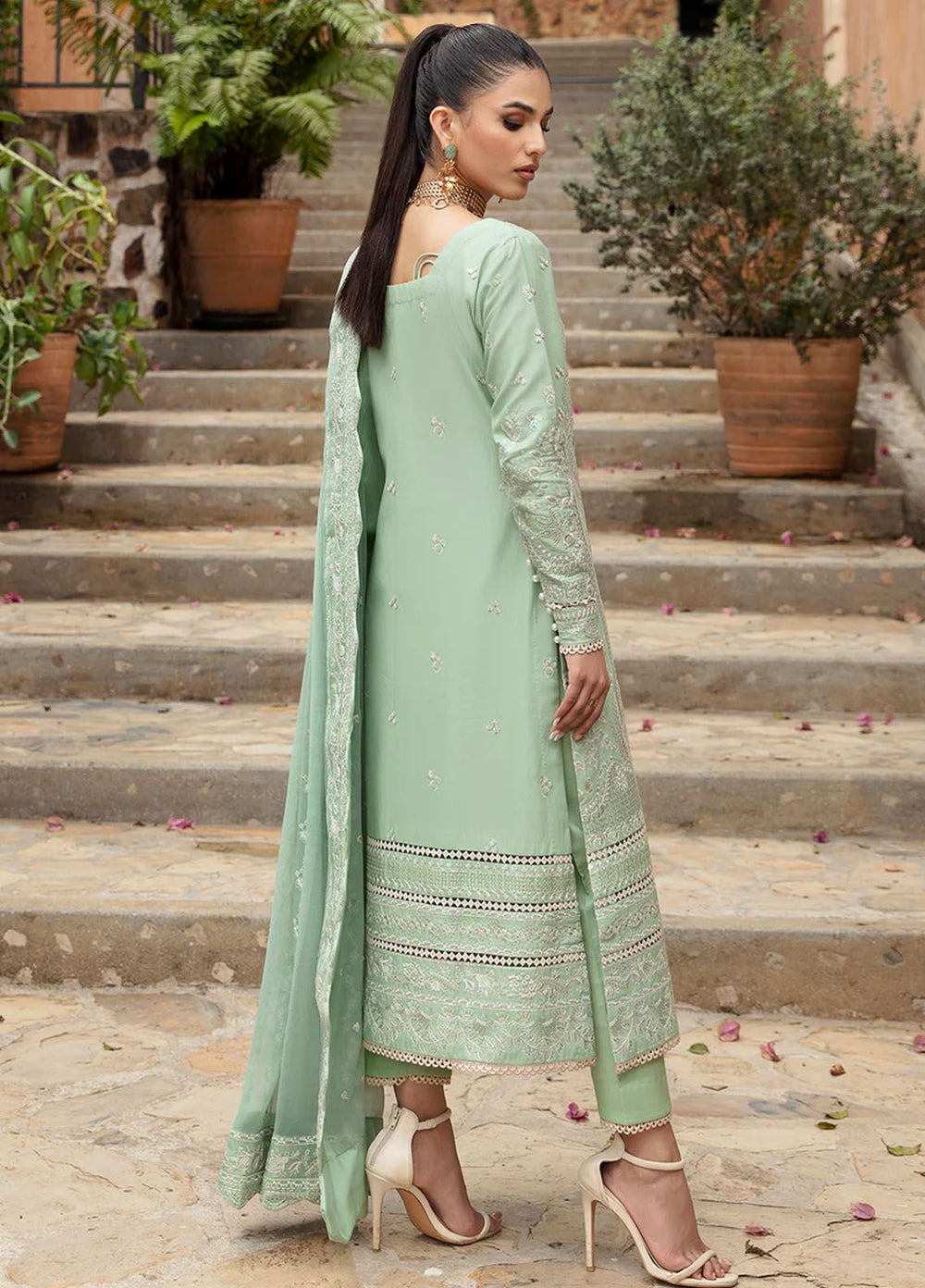 Safeera by Flossie Embroidered Chiffon Suits Unstitched 3 Piece FL24SF S-1309 Snow Pea - Luxury Collection