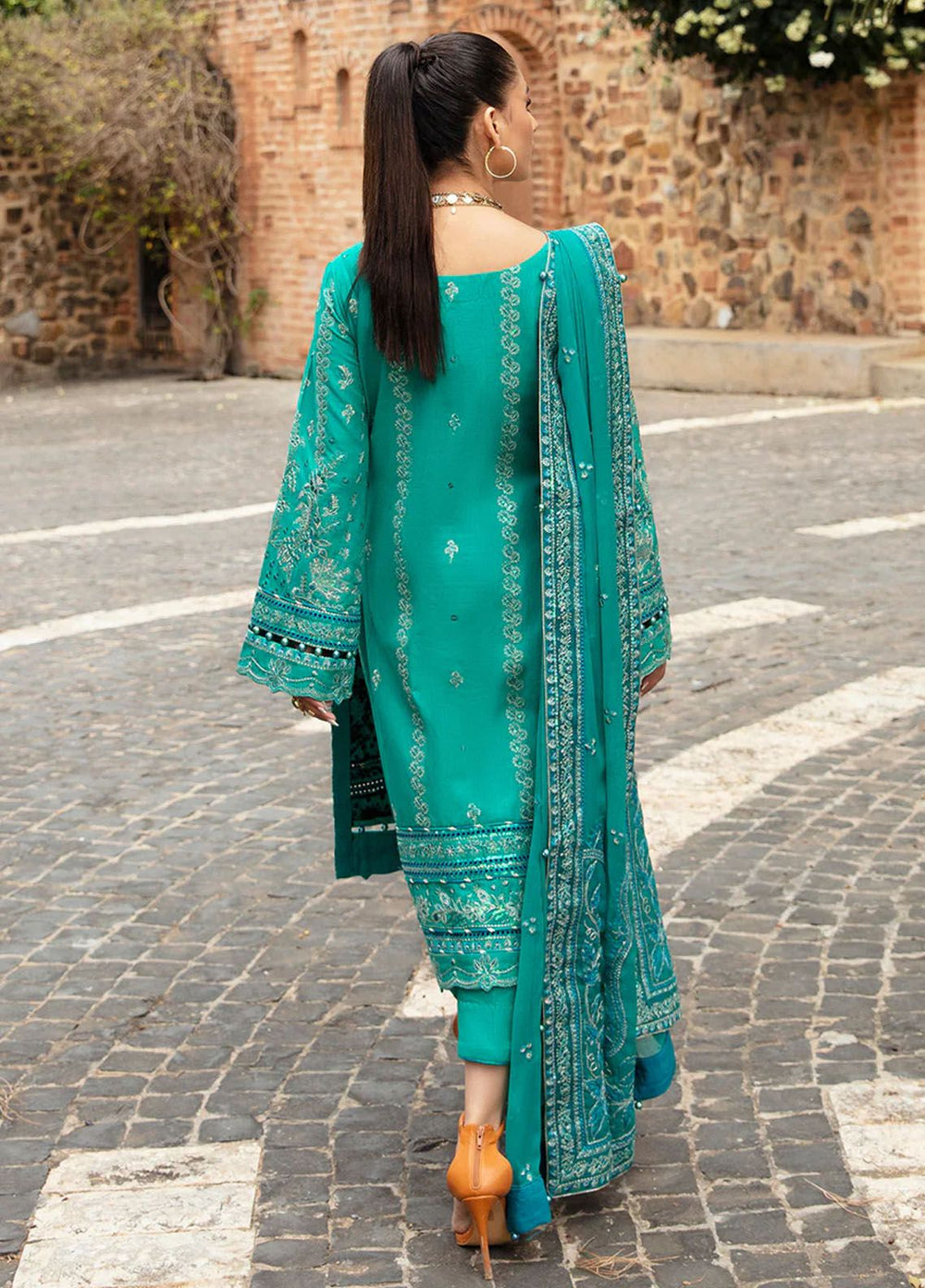 Safeera by Flossie Embroidered Chiffon Suits Unstitched 3 Piece FL24SF S-1304 Luster Green - Luxury Collection