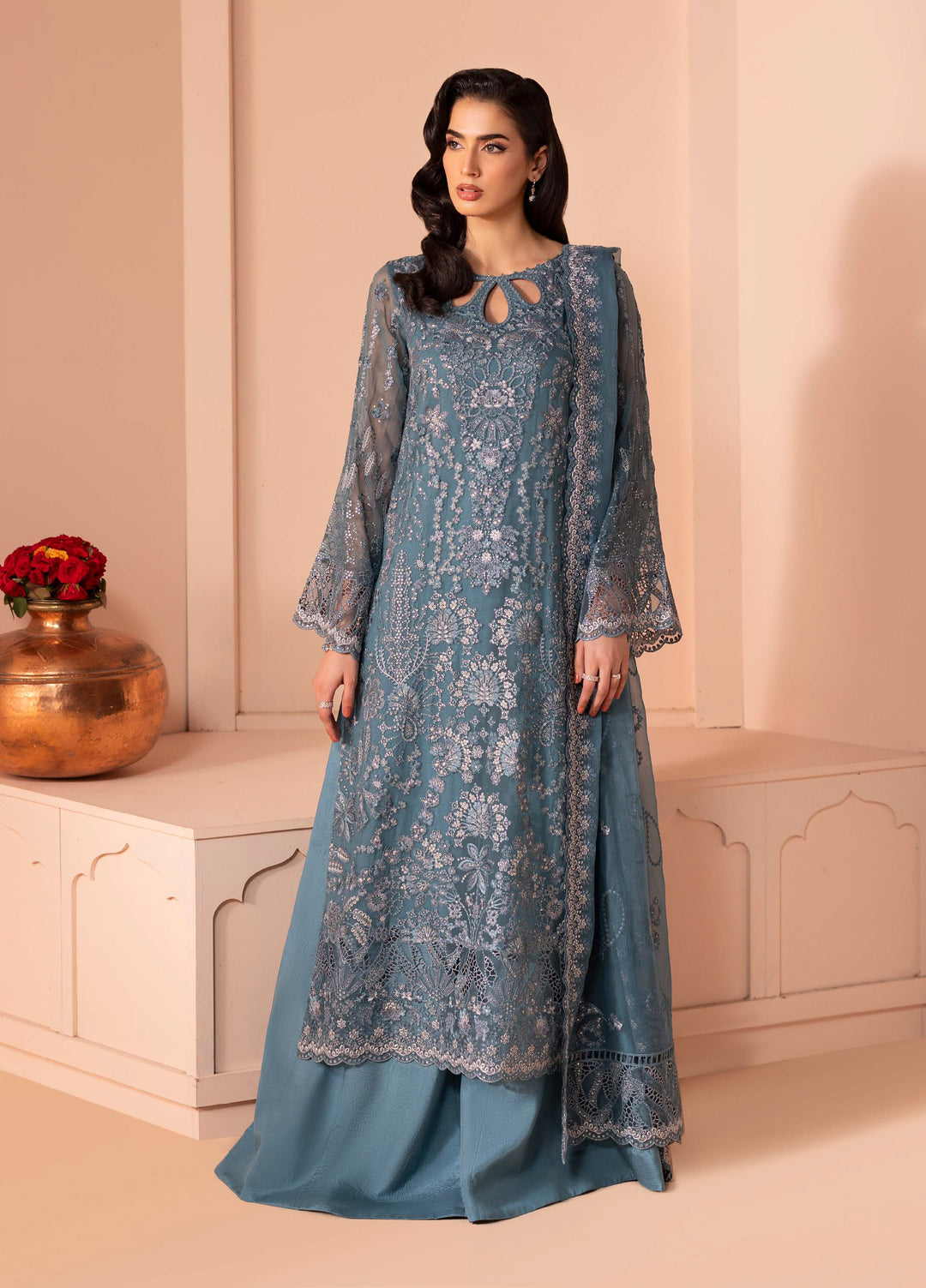 Lavish Premium Embroidered Chiffon Suits Unstitched 3 Piece LVP25UL D-10 Blue Haze - Formal Collection