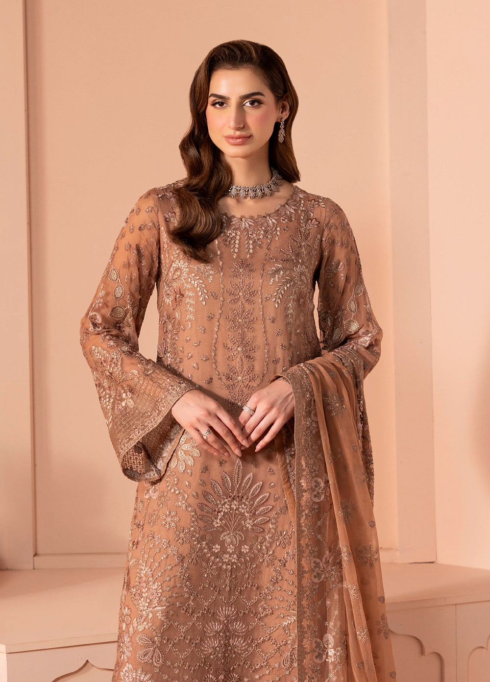 Aashnai by Lavish Embroidered Chiffon Suits Unstitched 3 Piece LVP24AC D-08 Mocha Bloom - Formals Collection